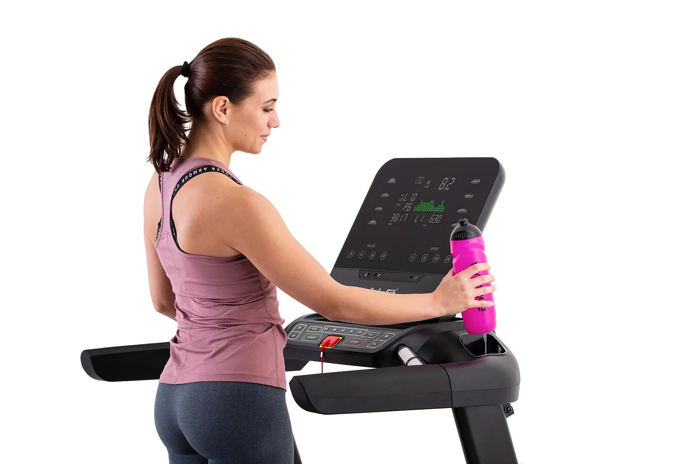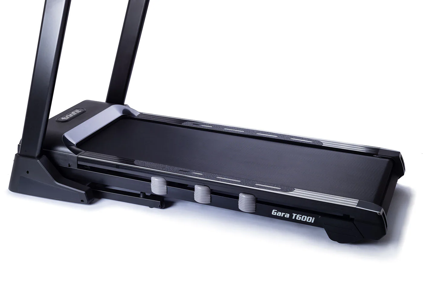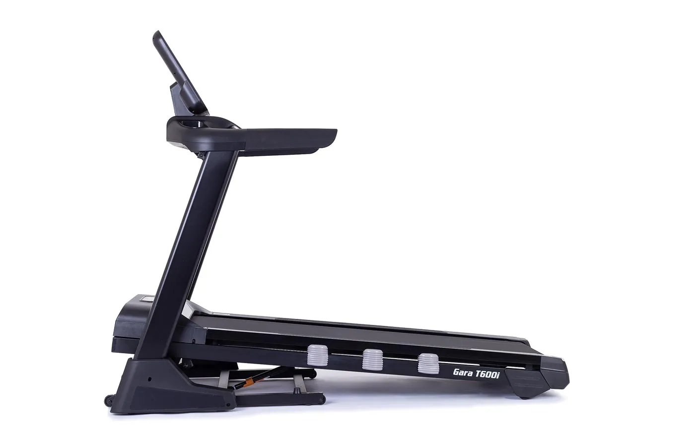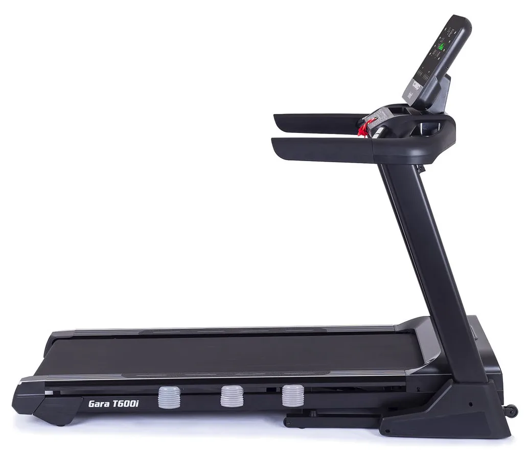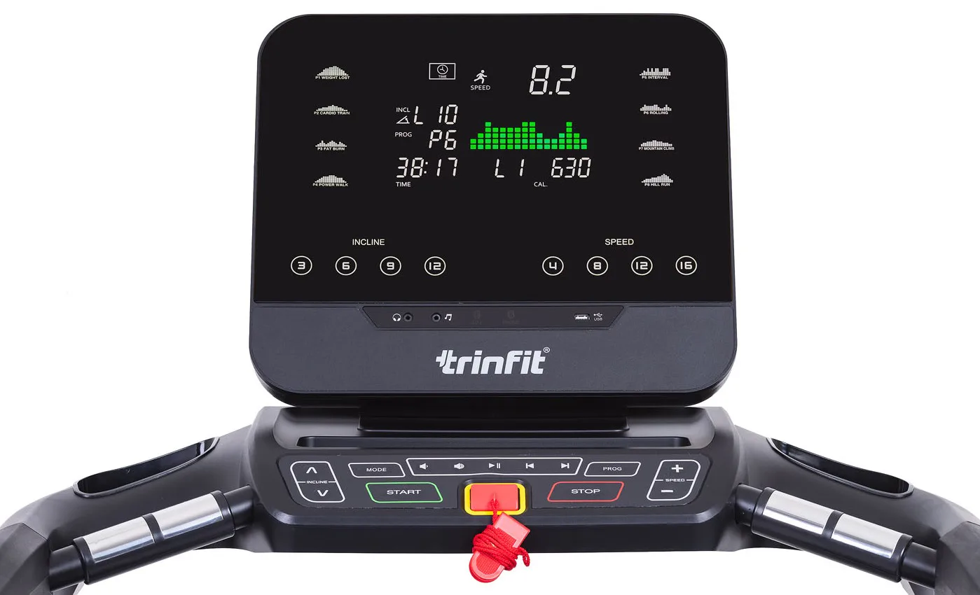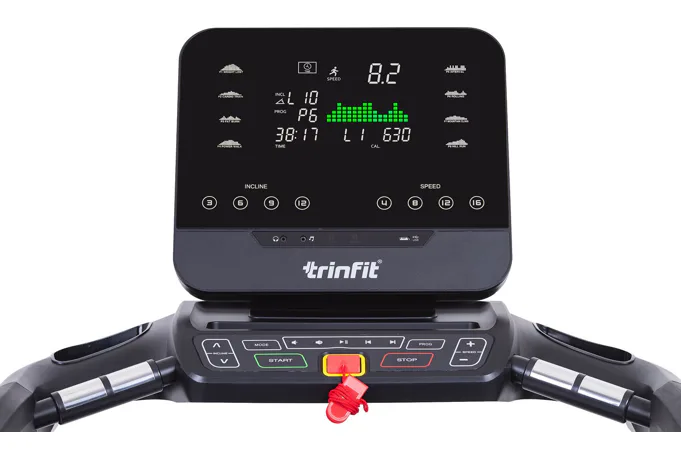 TRINFIT Gara T600i nabízí velký, přehledný a podsvětlený LCD displej s bohatou programovou nabídkou pro efektivní a zábavný trénink. Umožní vám sledovat váš trénink v reálném čase pomocí dat monitorujících vaši rychlost, čas, vzdálenost, spálené kalorie a srdeční frekvenci a řadou tréninkových programů, které si můžete nastavit dle tepové frekvence či dle jiných parametrů.