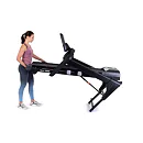 Pokud běžecký pás zrovna nepoužíváte, můžete jej jednoduše sklopit a ušetřit tak až 60% místa. Sklopení a manipulaci s pásem usnadňují i transportní kolečka.