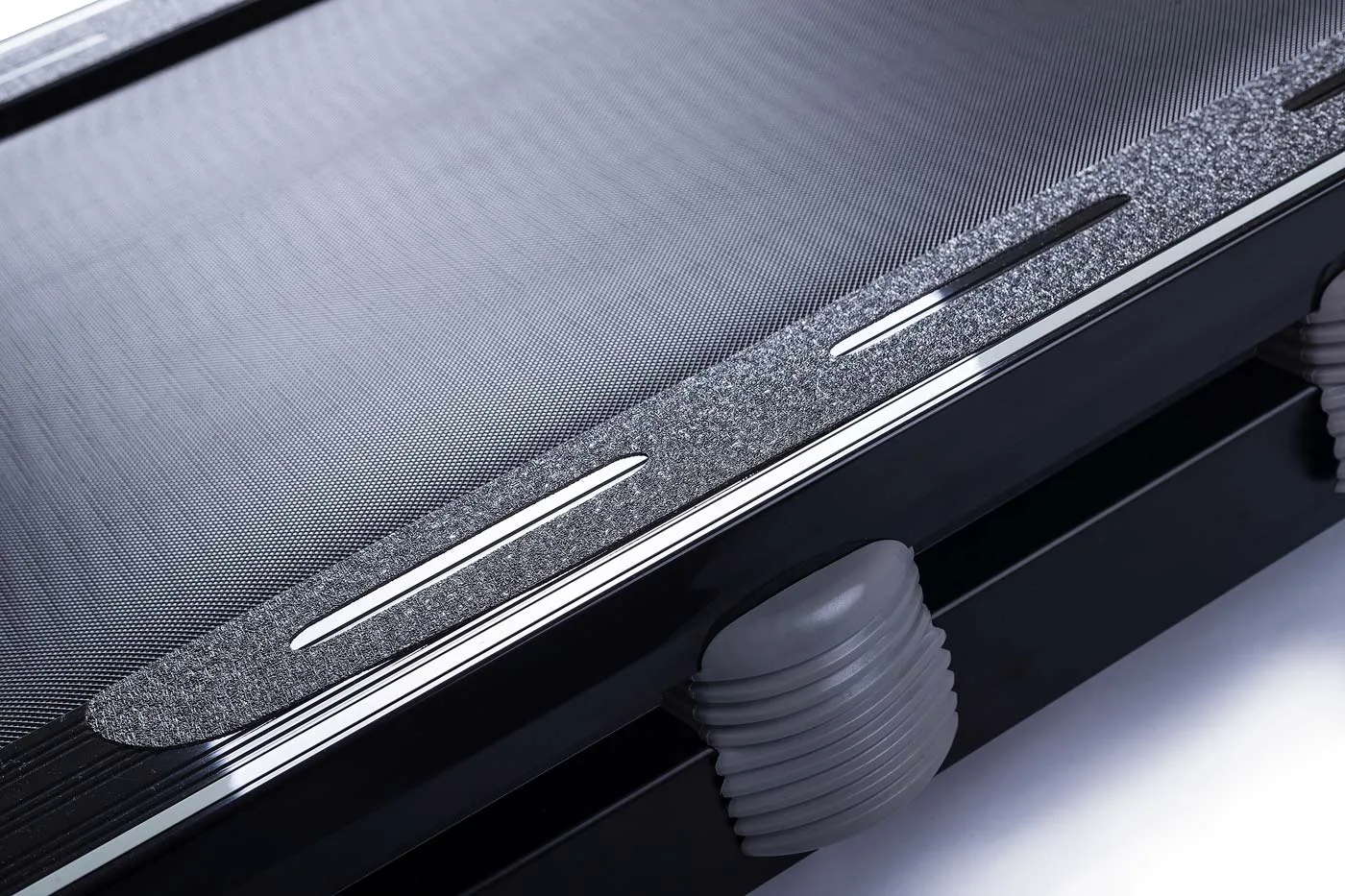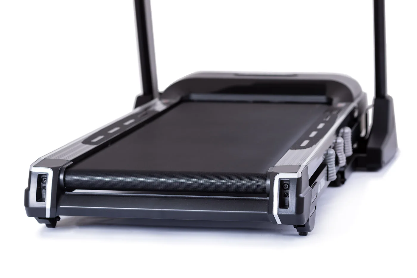 Díky pečlivě vyvinuté konstrukci a kvalitnímu odpružení běžecké plochy "Ortho-3D-Plus" minimalizuje zatížení kloubů a vazů a vy si můžete užít příjemný a přirozený pocit chůze, či běhu. Pás je navíc opatřen systémem odhlučnění "VibroSilence", který omezuje vibrace a přenos došlapů do podlahy. To zaručuje znatelně tišší chod oproti jiným modelům této cenové kategorie.