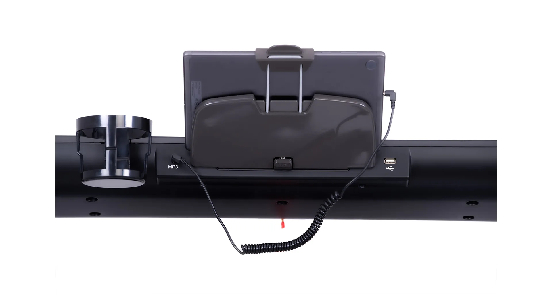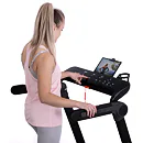 Díky funkci Bluetooth je možné běžecký pás spárovat s chytrými zařízeními pro poslech hudby ze zabudovaných reproduktorů a také můžete využívat tréninkové aplikace. Vyobrazený tablet není součástí dodávky.