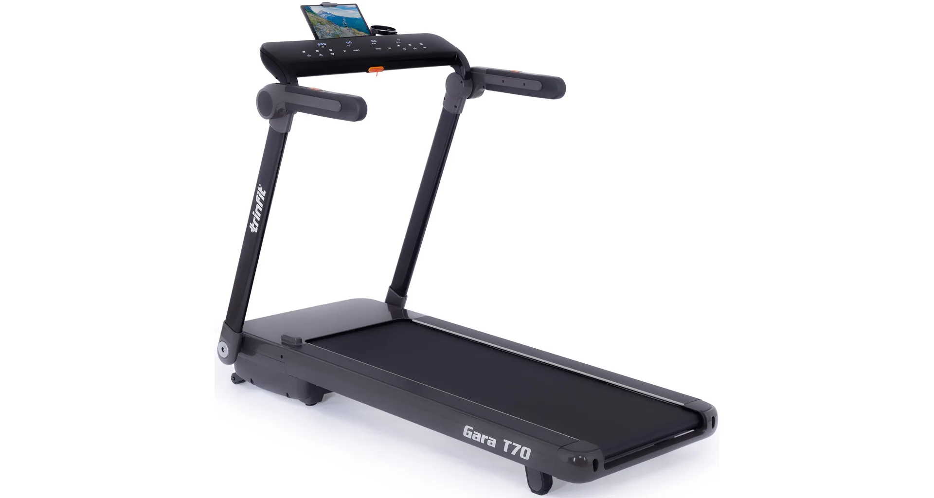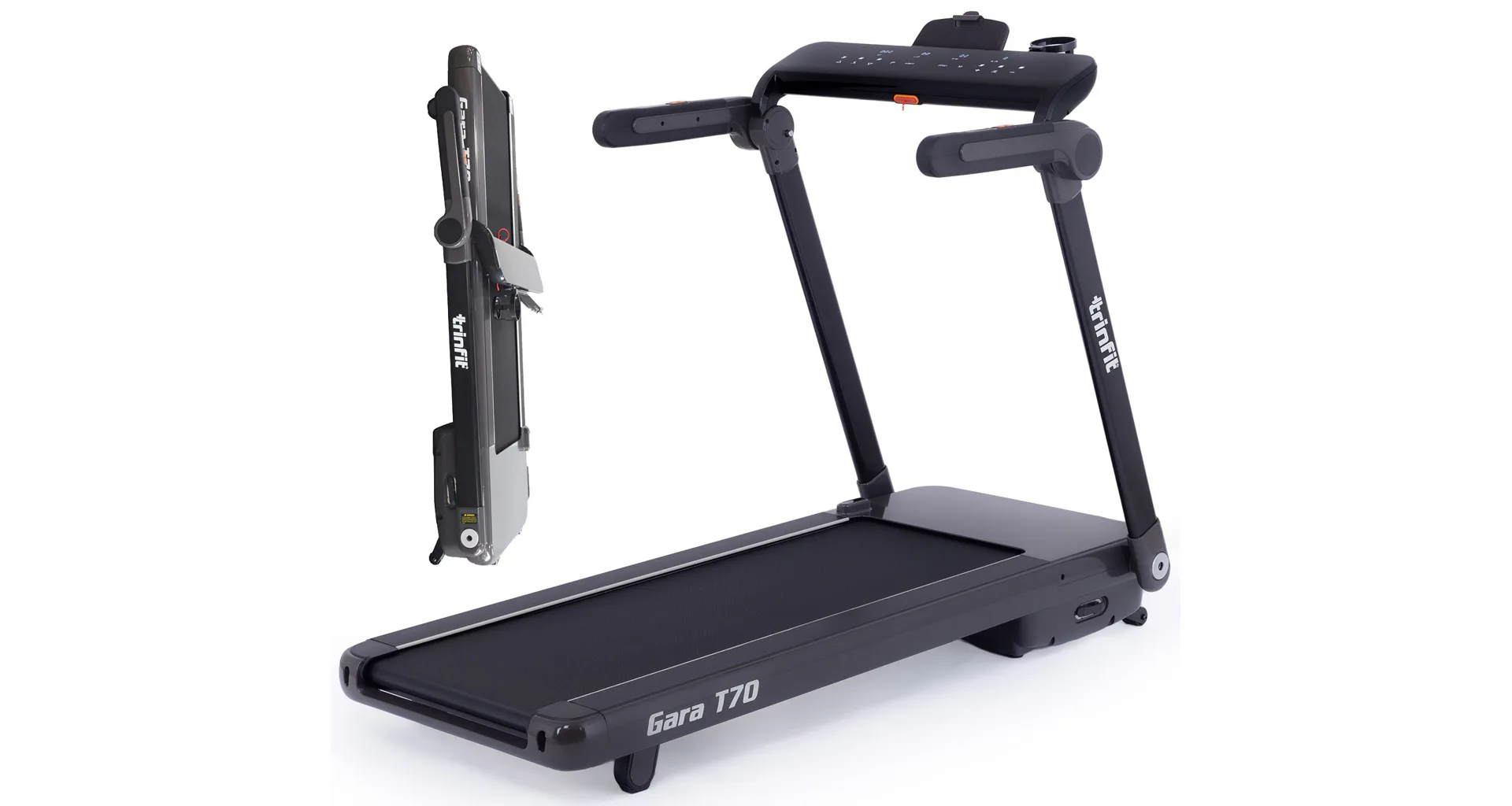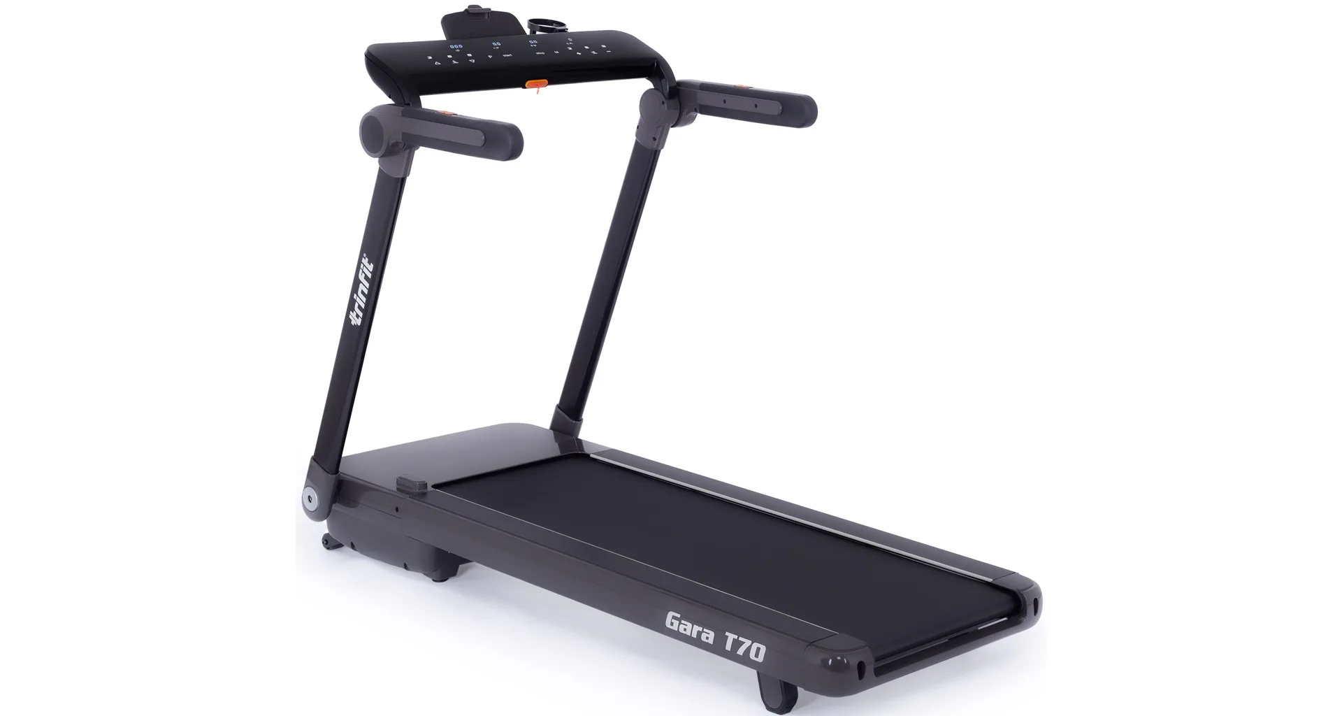 TRINFIT Gara T70 nabízí velký, přehledný a podsvětlený LED displej s bohatou programovou nabídkou pro efektivní a zábavný trénink. Umožní vám sledovat váš trénink v reálném čase pomocí dat monitorujících vaši rychlost, čas, vzdálenost, spálené kalorie, počet kroků a srdeční frekvenci.