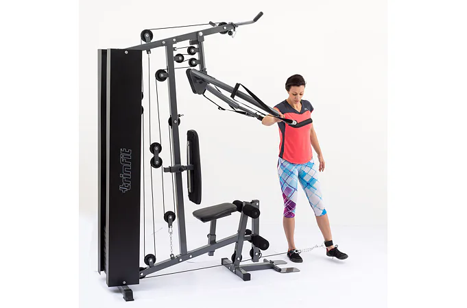 Multifunkční posilovací věž TRINFIT Gym GX3 je určena pro pravidelný kondiční trénink. Svým vybavením stanovuje nové standardy v této kategorii věží, nabízí široké možnosti polohování adaptérů, svou variabilitou a množstvím cviků předčí věže podstatně dražší. Díky důmyslné konstrukci a řadě adaptérů umožňuje věž na ploše pouhých 2 m2 procvičit přes 50 různých cviků na všechny svalové partie.