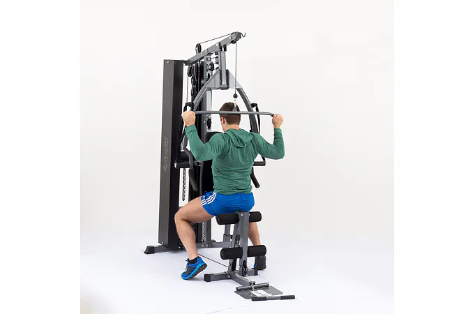Robusní ocelová konstrukce doplněná ložisky v kladkách a kvalitními ocelovými lanky potaženými speciálním plastem pak zaručuje bezpečné cvičení a dlouhou životnost stroje.