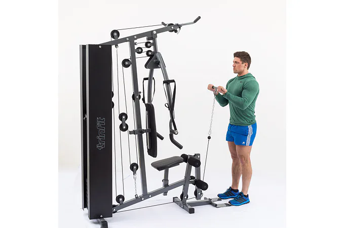 Multifunkční posilovací věž TRINFIT Gym GX3 je stroj určený pro každého kdo hledá cenově dostupnou a přitom rozumně provedenou posilovací věž pro pravidelné, domácí kondiční cvičení. Svým vybavením stanovuje nové standardy v této kategorii věží, nabízí široké možnosti polohování adaptérů, svou variabilitou a množstvím cviků předčí věže podstatně dražší. Díky své konstrukci a řadě adaptérů umožňuje věž na ploše pouhých 2 m2 procvičit přes 50 různých cviků na všechny svalové partie.
