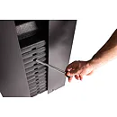 - Úsporný design umožňuje umístění stroje i u zdi, nebo v rohu místnosti