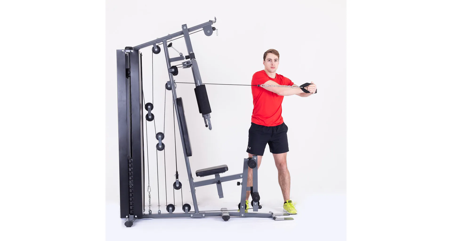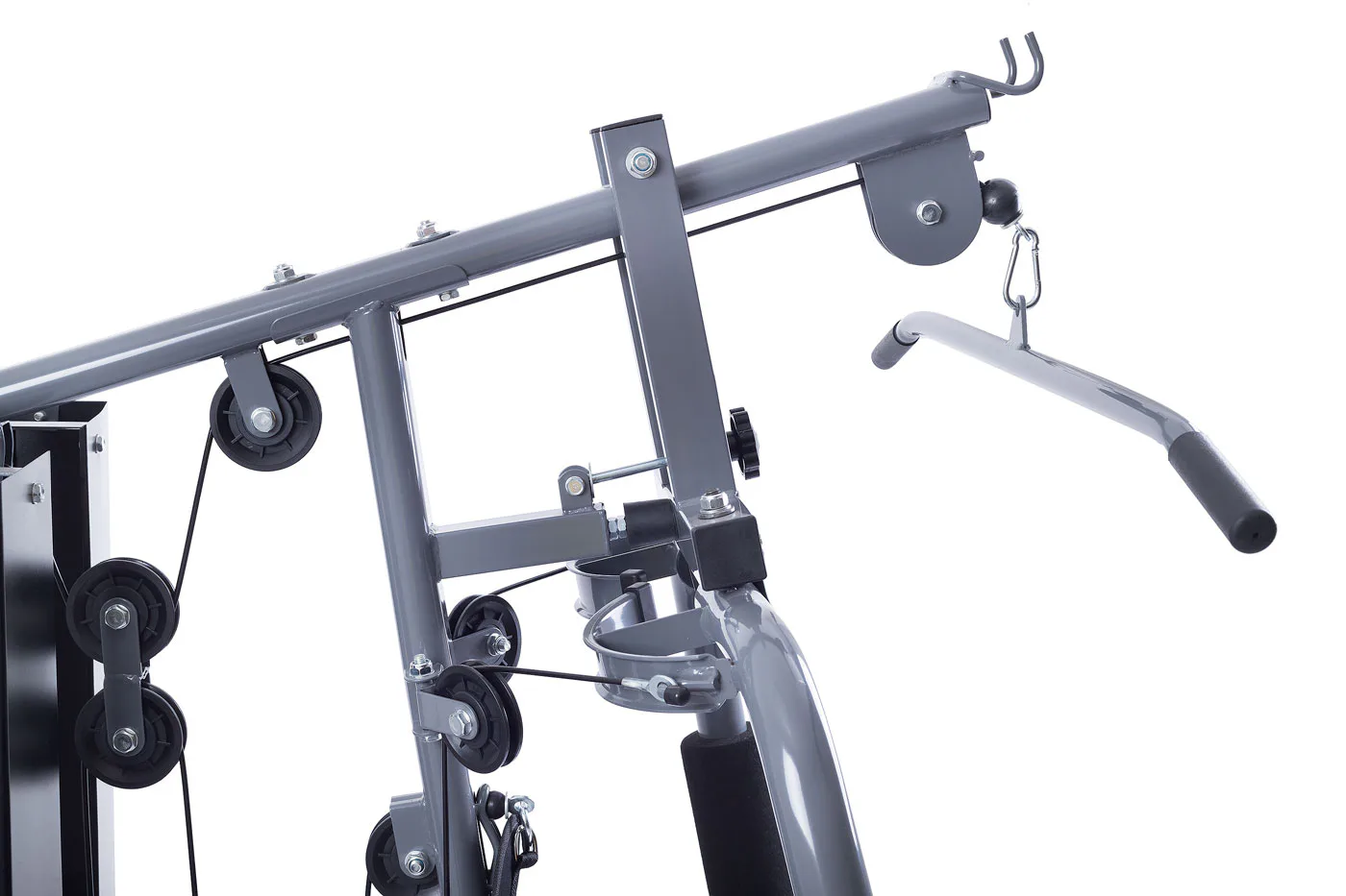 Robusní ocelová konstrukce s nosností až do 130 kg doplněná ložisky v kladkách a kvalitními ocelovými lanky potaženými speciálním plastem pak zaručuje bezpečné cvičení a dlouhou životnost stroje. Ocelová lanka jsou potažená nylonem proti oděru a testovaná na nosnost 1 000 kg, což zajišťuje spolu s kladkami na ložiscích zcela plynulý a tichý chod věže.