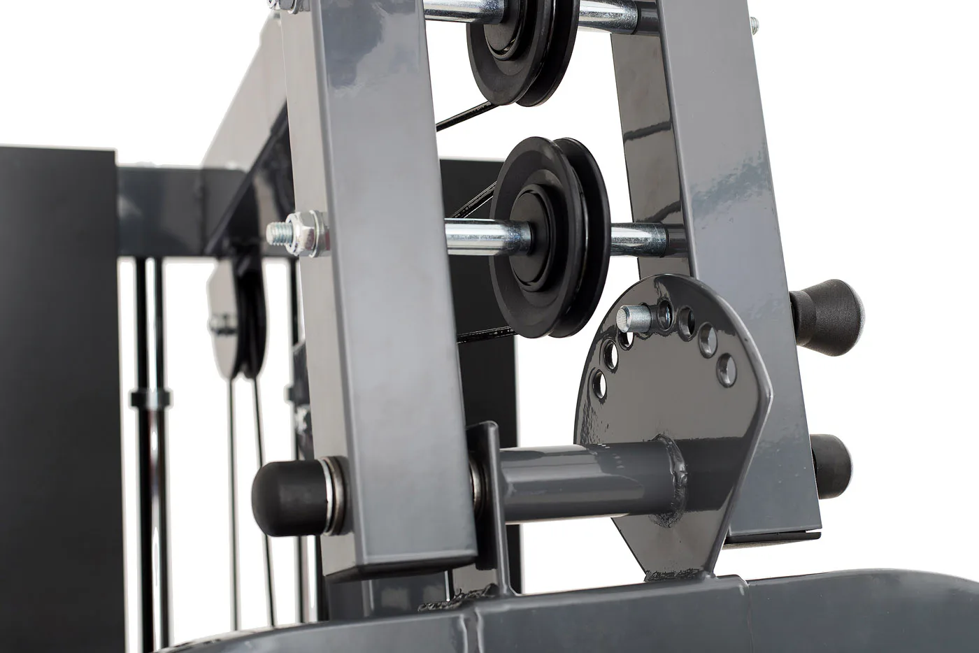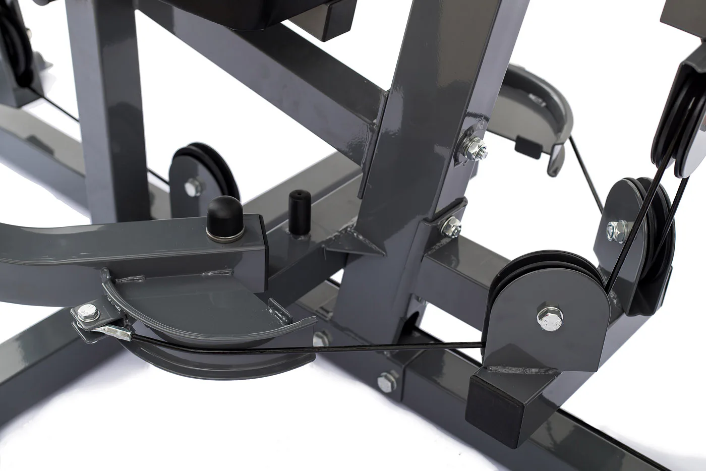 Robustní ocelová konstrukce doplněná ložisky v kladkách a kvalitními ocelovými lanky potaženými speciálním plastem pak zaručuje bezpečné cvičení a dlouhou životnost stroje.