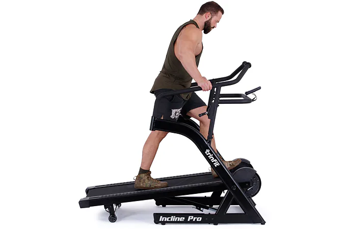 TRINFIT Incline Pro je profesionální běžecký pás pro opravdu náročné zákazníky, který skvěle zapadne do klubového fitness centra, či sportovního klubu. Vyniká především robustní konstrukcí velkou běžeckou plochou 50x137 cm s možností extrémního sklonu až 18%, maximální nosností až 150 kg a vydrží tak i několikahodinové denní zatížení.