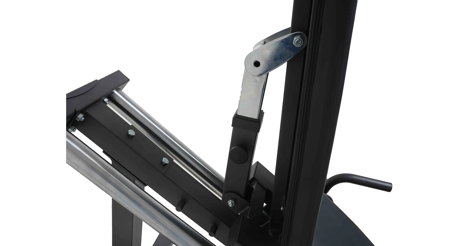 Pro zvýšení bezpečnosti je stroj vybaven nastavitelným bezpečnostním dorazem až do 4 poloh a odkládacími trny v 3 různých výškách. Na stroji si tedy bezpečně zacvičí lidé nižšího i vyššího vzrůstu.