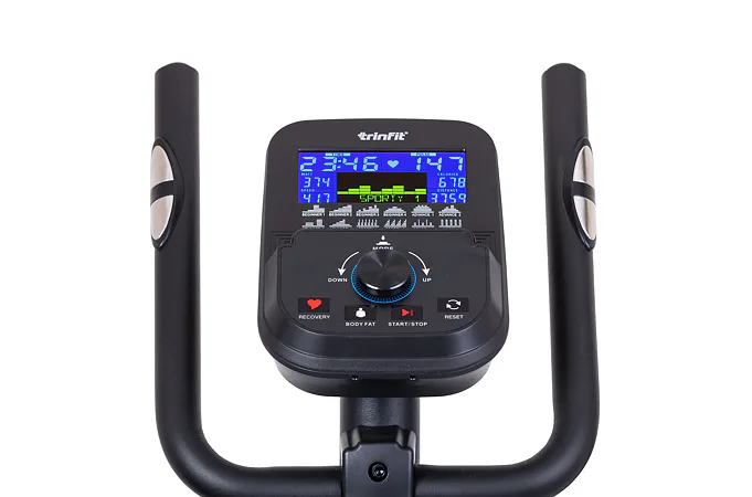 Pro maximální efektivitu cvičení nabízí TRINFIT Monta C500i různé programy zaměřené na měření a regulaci tepové frekvence, včetně HRC programů a funkce Body Fat. LCD displej přehledně zobrazuje klíčové tréninkové údaje, jako jsou čas, vzdálenost, rychlost, spálené kalorie a srdeční frekvence.