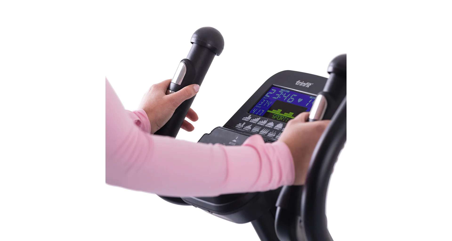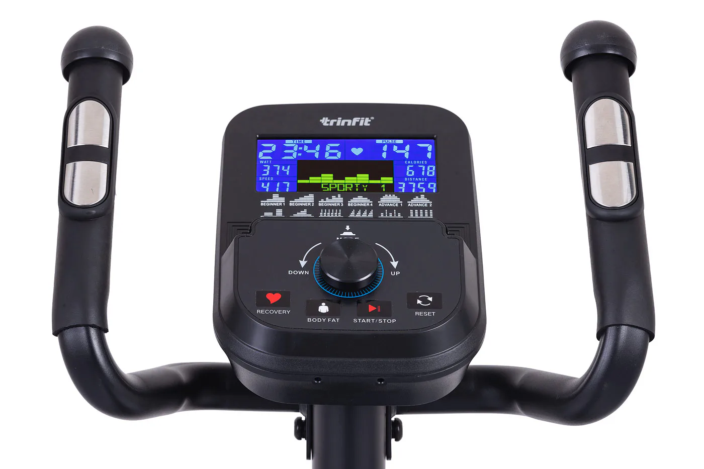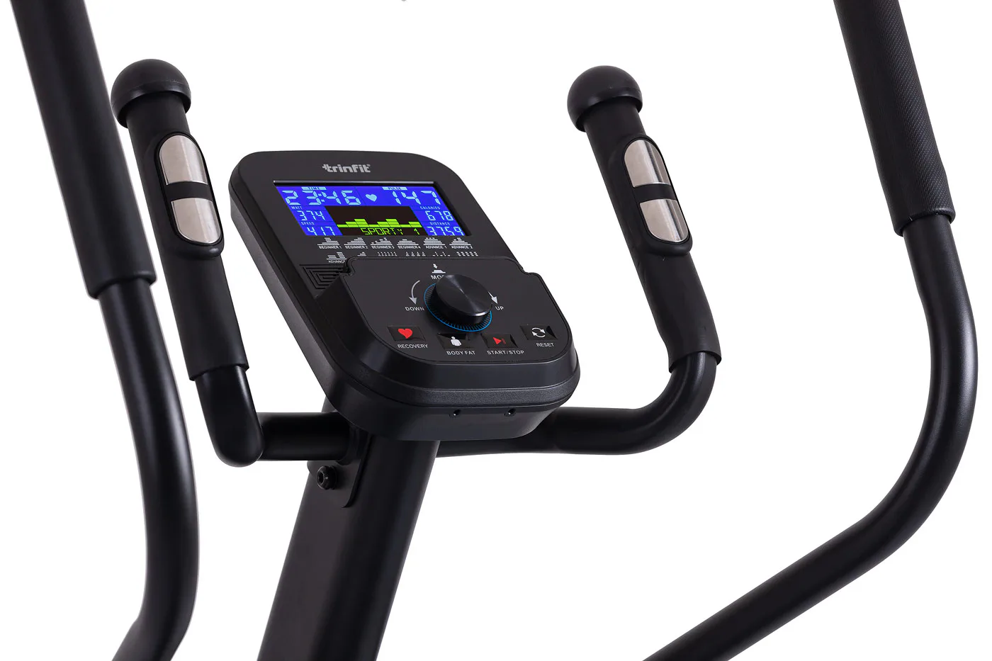 Pro maximální efektivitu cvičení nabízí TRINFIT Monta C550i různé programy zaměřené na měření a regulaci tepové frekvence, včetně HRC programů a funkce Body Fat. LCD displej přehledně zobrazuje klíčové tréninkové údaje, jako jsou čas, vzdálenost, rychlost, spálené kalorie a srdeční frekvence.