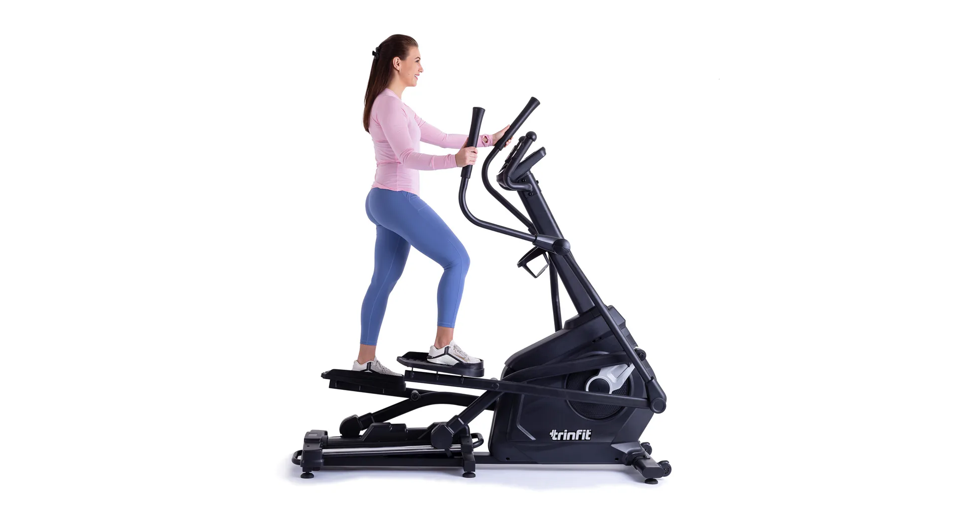TRINFIT Monta C550i je vysoce kvalitní eliptický trenažér určený pro domácí použití, vybavený předním setrvačníkem, elektronickou regulací zátěže, a širokou nabídkou programů. Díky své robustní konstrukci s vysokou nosností a tichým chodem nabízí pohodlný trénink kdykoli, bez ohledu na počasí nebo otevírací dobu fitness center.