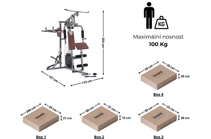 Posilovací věž TRINFIT Multi Gym MX5 je multifunkční zařízení, které vám na velmi malém prostoru umožní procvičení více než 45 různých cviků. Na stroji mohou současně cvičit 2 osoby, je určena pro efektivní procvičení celého těla. Věž je vhodná pro uživatele, kteří si chtějí na relativně malém prostoru zacvičit, vytvarovat postavu a nabrat svalovou hmotu. Pro efektivní procvičení břišních svalů je posilovací věž TRINFIT Multi Gym MX5 na boku doplněna bradly s přednožováním. Velkou výhodou věže je speciální stepper s velkým rozsahem zátěže a možností nastavení odporu šlapání ve 3 stupních, ideální pro ženy. Závaží je řešeno pomocí klasických cihliček, díky zpřevodování umožňuje na vybraných adaptérech cvičení s vahou až 60 kg (viz indexy přenosu síly níže). Nastavení požadované váhy je snadné, rychlé a bezpečné i pro začátečníky.