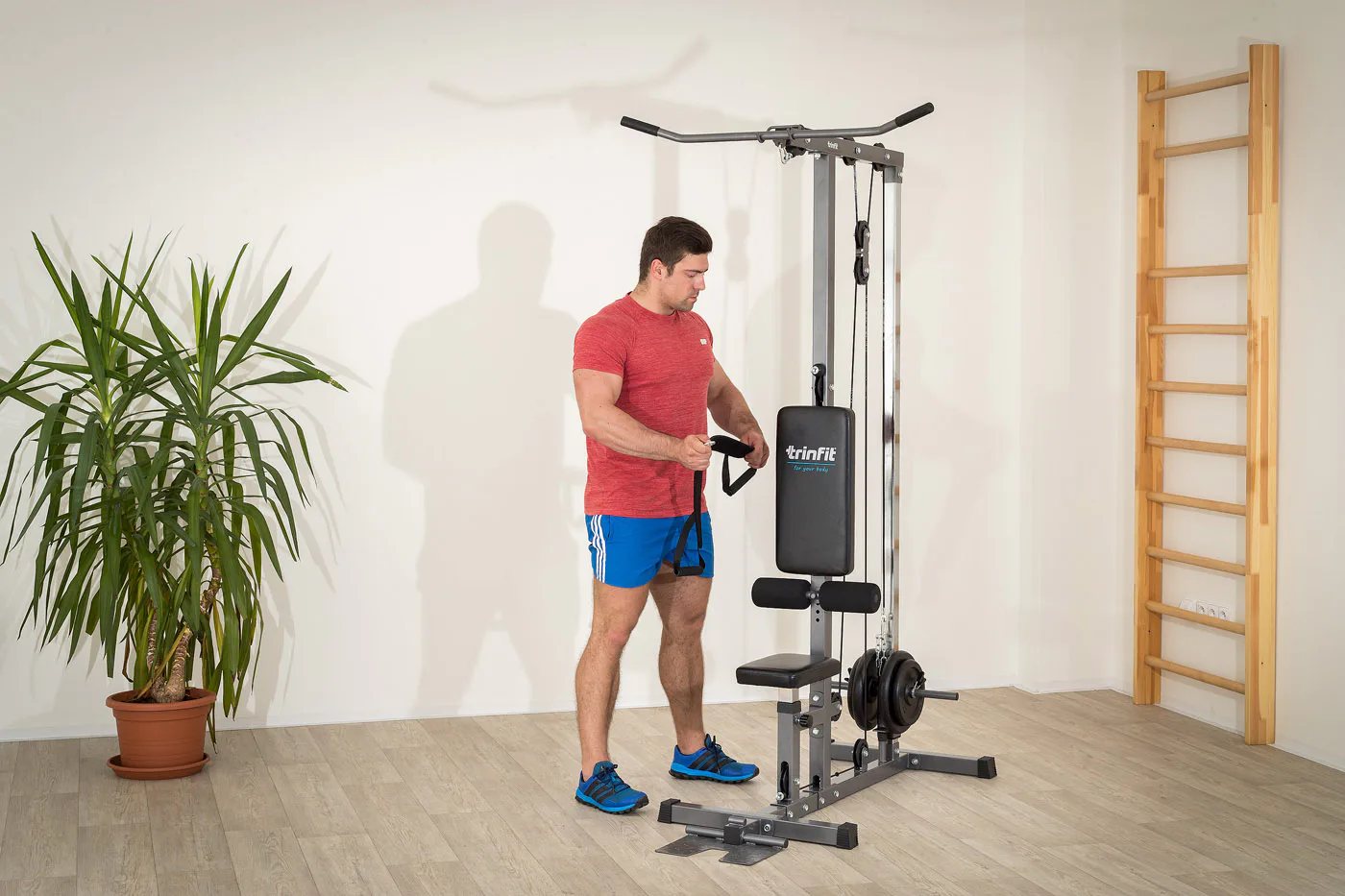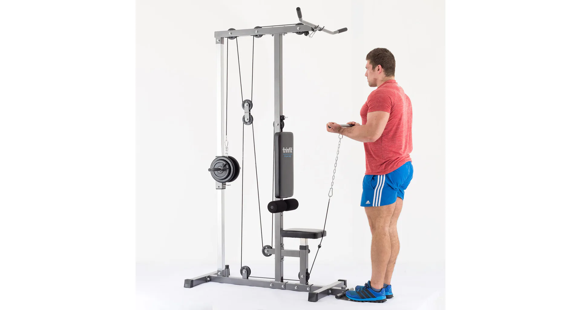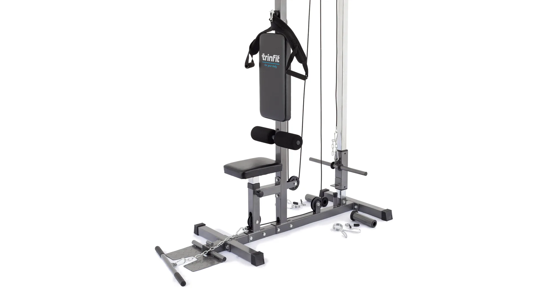 Kladková věž TRINFIT Multi Lat umožňuje procvičení desítek cviků svalů celého těla, je ideálním doplňkem posilovacích lavic. Věž je vybavena horní kladkou, spodní kladkou a speciální tricepsovou kladkou ve středu stroje, rozšiřující možnosti věže o další cviky včetně procvičení břišních svalů. Důmyslná kombinace 8-mi kladek s ložisky umožňuje na relativně malém prostoru provádět cviky na posílení zádového svalstva, prsního svalstva, svalstva nohou, ale i cviky pro posilování bicepsů, tricepsů či břicha. Spodní kladka slouží i k tzv. veslování, pomocí kterého je posilována komplexně většina těla, lze na ní ale cvičit i desítky jiných cviků.