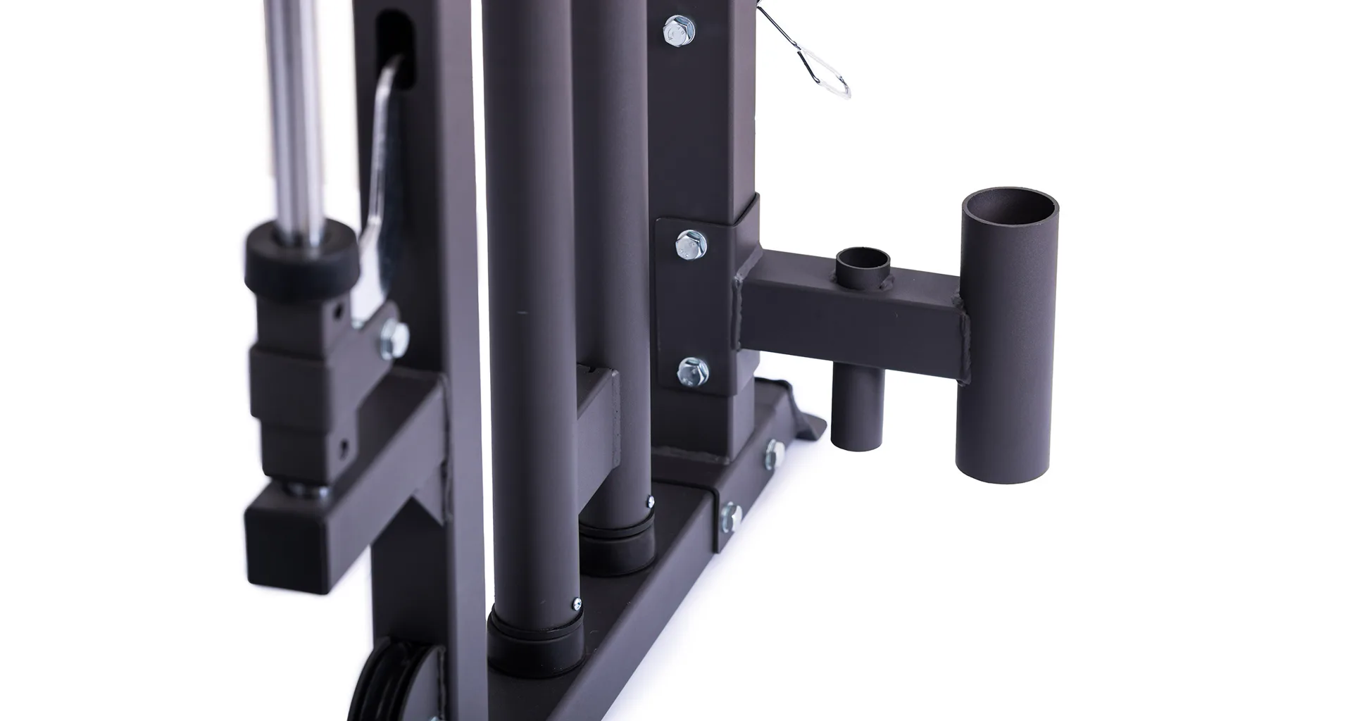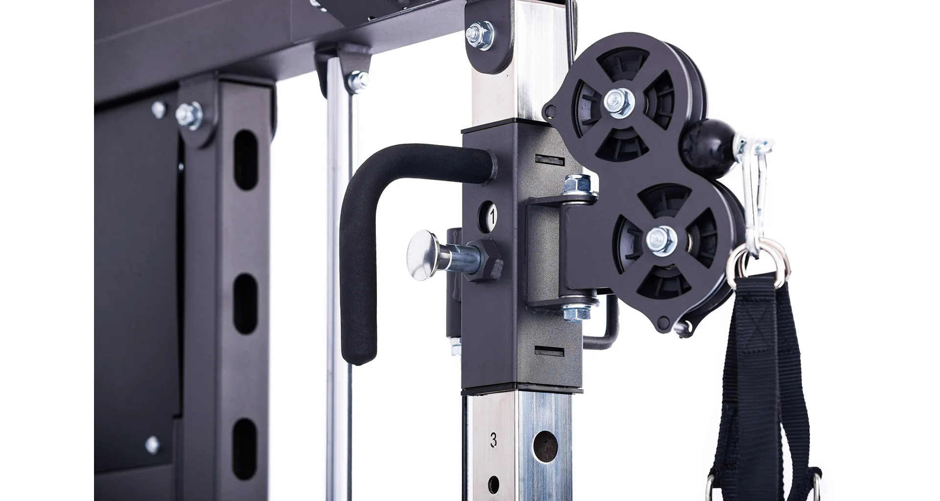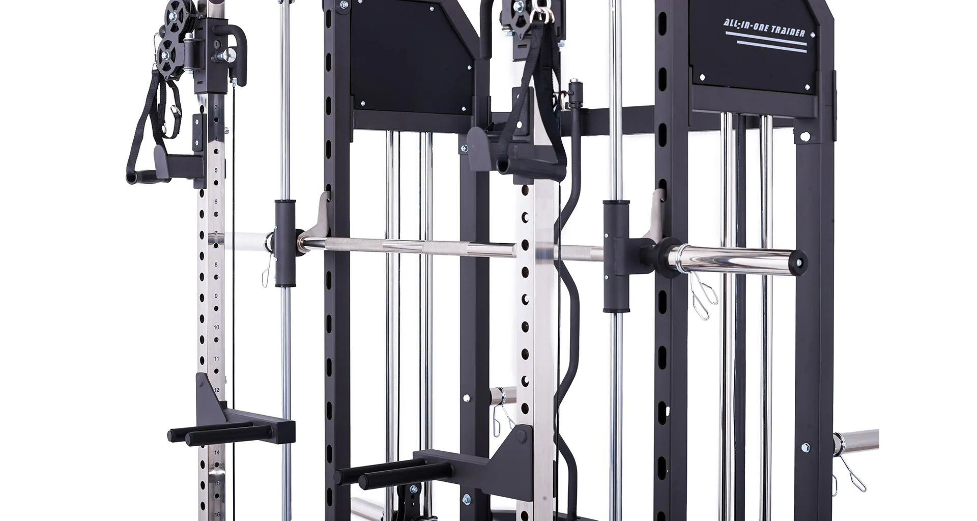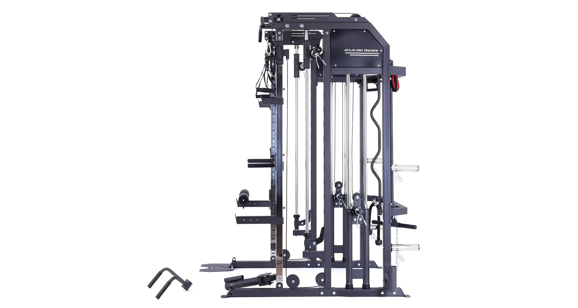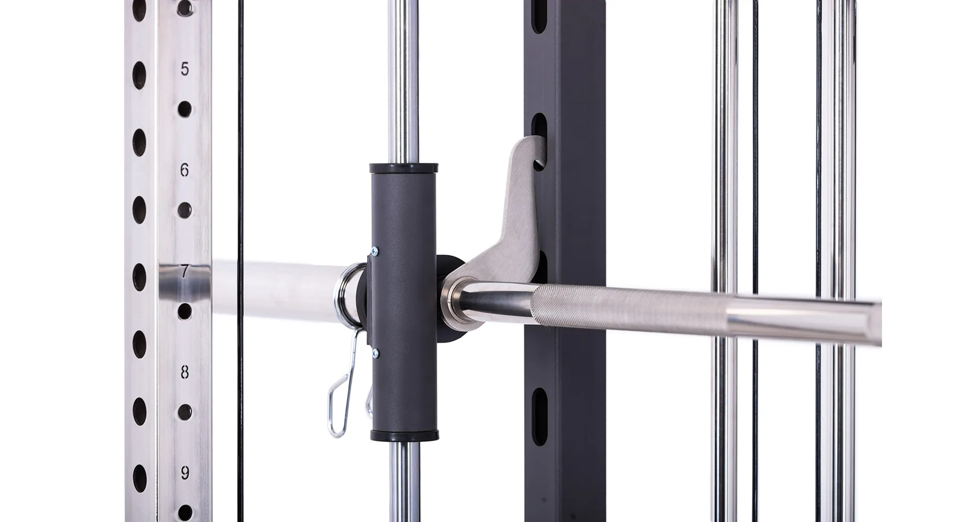 Model Multi Smith CX50 vyniká bezkonkurenční přirozenou ergonomií pohybu kladek, adaptérů a multipressu. Všechny kladky a multipress jsou osazeny kvalitními průmyslovými ložisky s mechanismem pro dopínání. Multipress jako závaží také využívá kotouče s průměrem 25 mm nebo 50 mm a pro odložení kotoučů jsou po stranách klece celkem 4 odkládací trny.