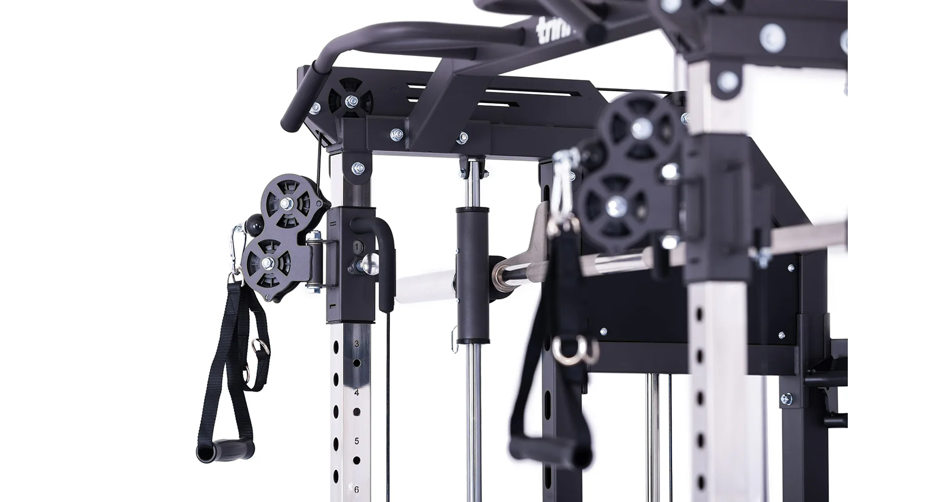 Multipress TRINFIT Multi Smith CX50 využívá jako závaží kotouče, je tedy pouze na vás, jakou zátěž si zvolíte. Je možné použít kotouče s průměrem 25 mm a díky redukcím také olympijské kotouče s průměrem 50 mm. Zároveň nabízí nepřeberné množství druhů cvičení formou tricepsových kliků, tlaků na prsa, ramena, kladek atd.. Dvě protisměrné kladky je možné polohovat v celé výšce děrovaných profilů a multipress ve 14 polohách, můžete tak perfektně procvičit celé tělo.