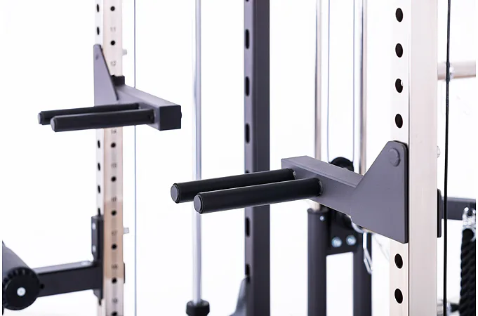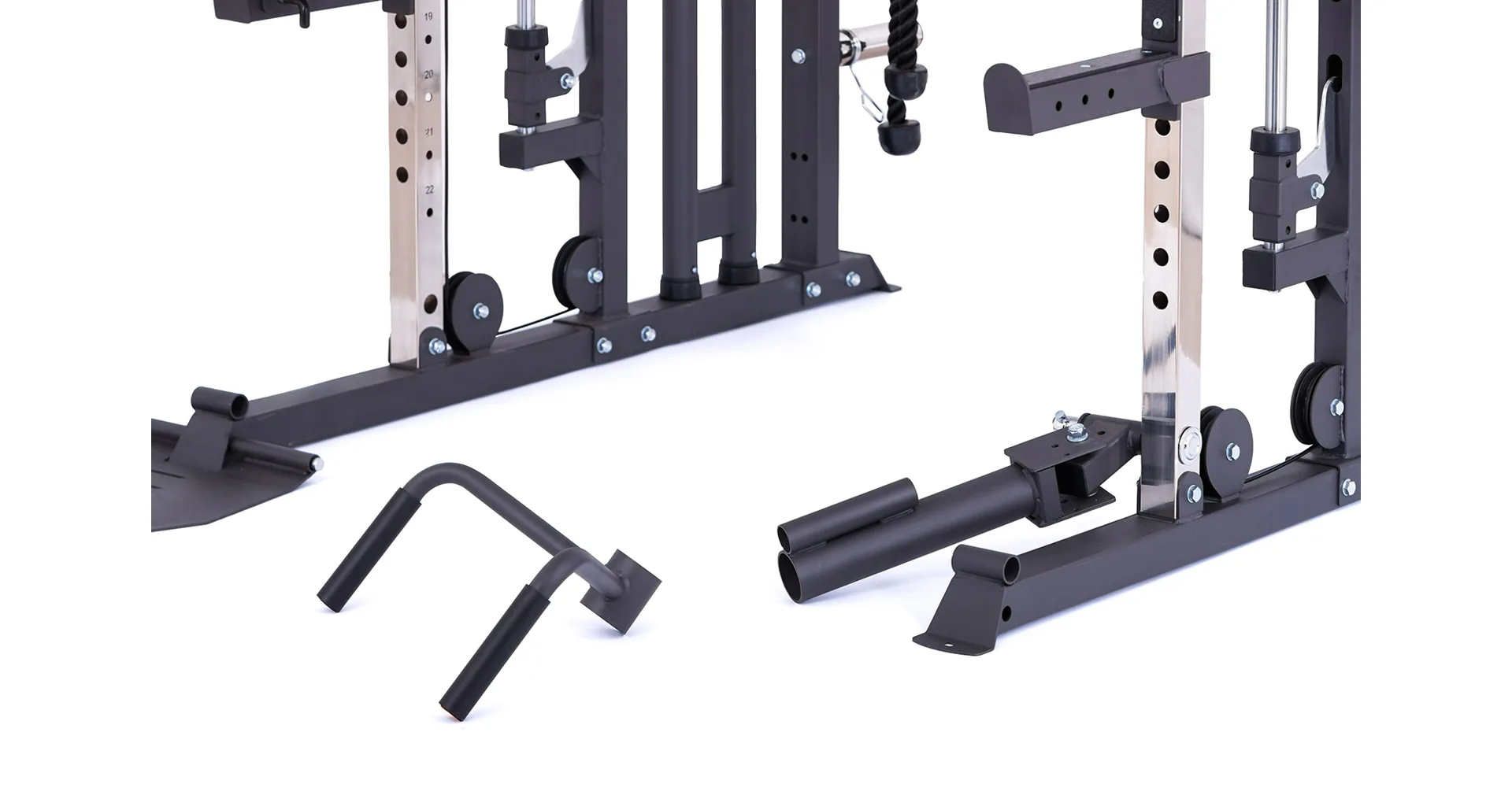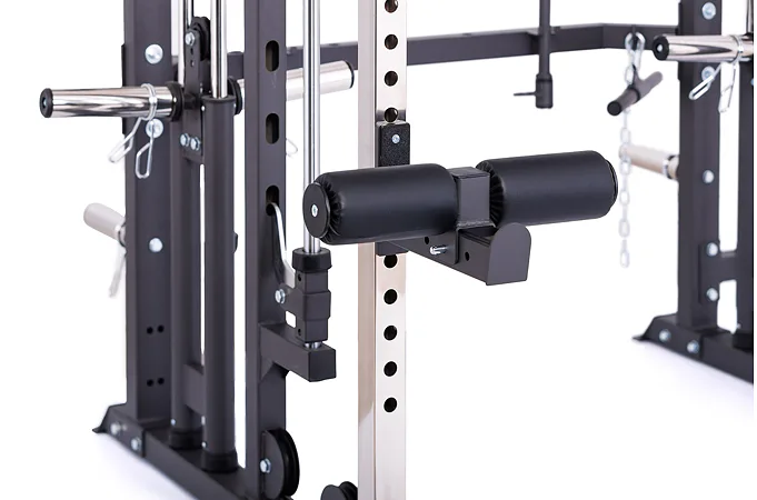Model Multi Smith CX50 vyniká bezkonkurenční přirozenou ergonomií pohybu kladek, adaptérů a multipressu. Všechny kladky a multipress jsou osazeny kvalitními průmyslovými ložisky s mechanismem pro dopínání. Multipress jako závaží také využívá kotouče s průměrem 25 mm nebo 50 mm a pro odložení kotoučů jsou po stranách klece celkem 4 odkládací trny.