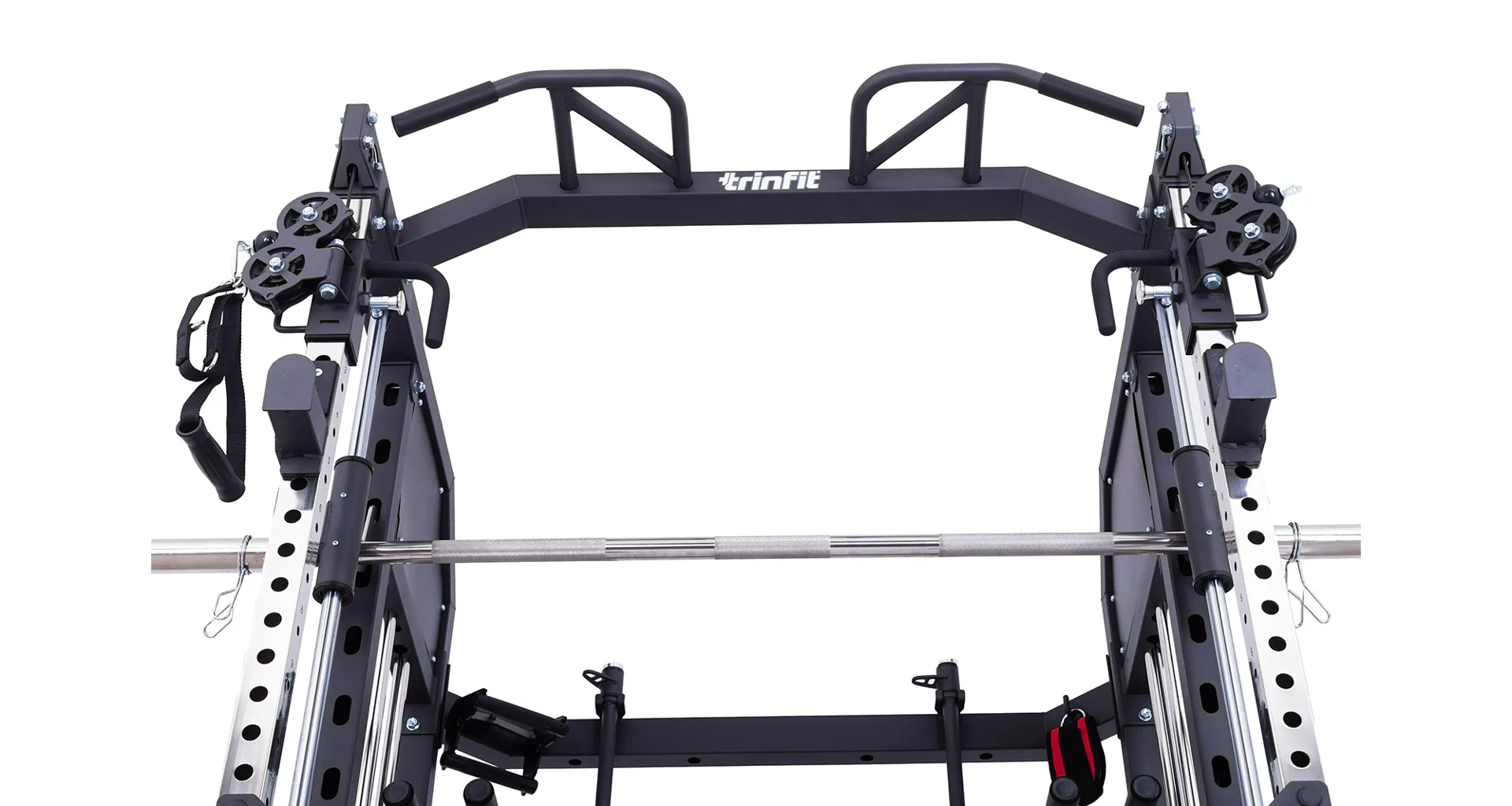 Multipress TRINFIT Multi Smith CX50 využívá jako závaží kotouče, je tedy pouze na vás, jakou zátěž si zvolíte. Je možné použít kotouče s průměrem 25 mm a díky redukcím také olympijské kotouče s průměrem 50 mm. Zároveň nabízí nepřeberné množství druhů cvičení formou tricepsových kliků, tlaků na prsa, ramena, kladek atd.. Dvě protisměrné kladky je možné polohovat v celé výšce děrovaných profilů a multipress ve 14 polohách, můžete tak perfektně procvičit celé tělo.