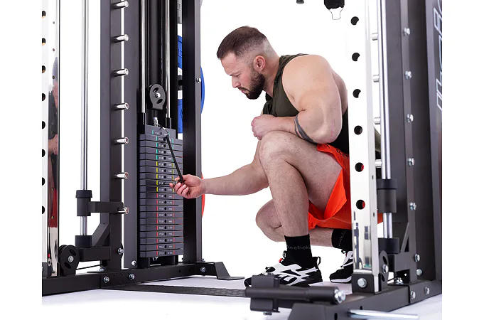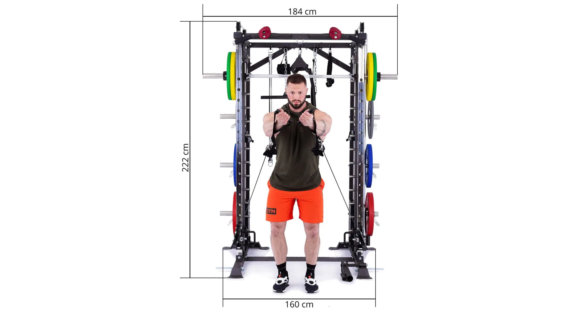 TRINFIT Multi Smith CX80 nabízí dva zásobníky zátěže o váze 90 kg (dohromady tedy až 180 kg závaží!). Zároveň nabízí nepřeberné množství druhů cvičení formou tricepsových kliků, tlaků na prsa, ramena, kladek atd... Dvě protisměrné kladky je možné polohovat v 18 výškových polohách, můžete tak perfektně procvičit celé tělo.