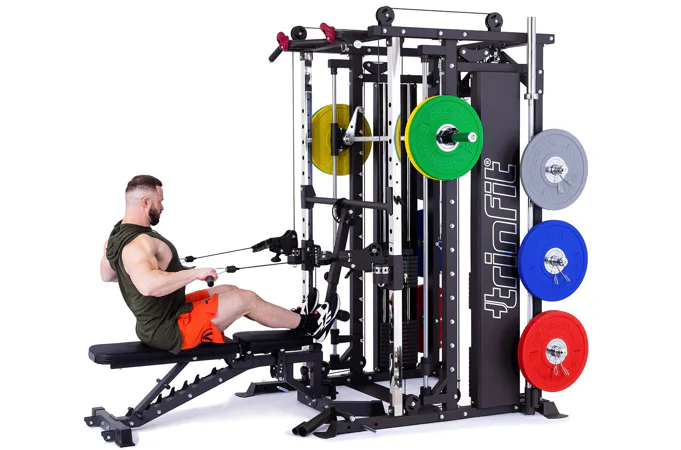 Díky bohaté výbavě TRINFIT Multi Smith CX80, už nebudete muset vymýšlet žádné alternativy. Odcvičíte na ní totiž opravdu jakýkoliv cvik a pokud si k ní pořídíte lavičku s olympijskou osou, máte takřka celou posilovnu na prostoru s rozměry 2 x 2 m.