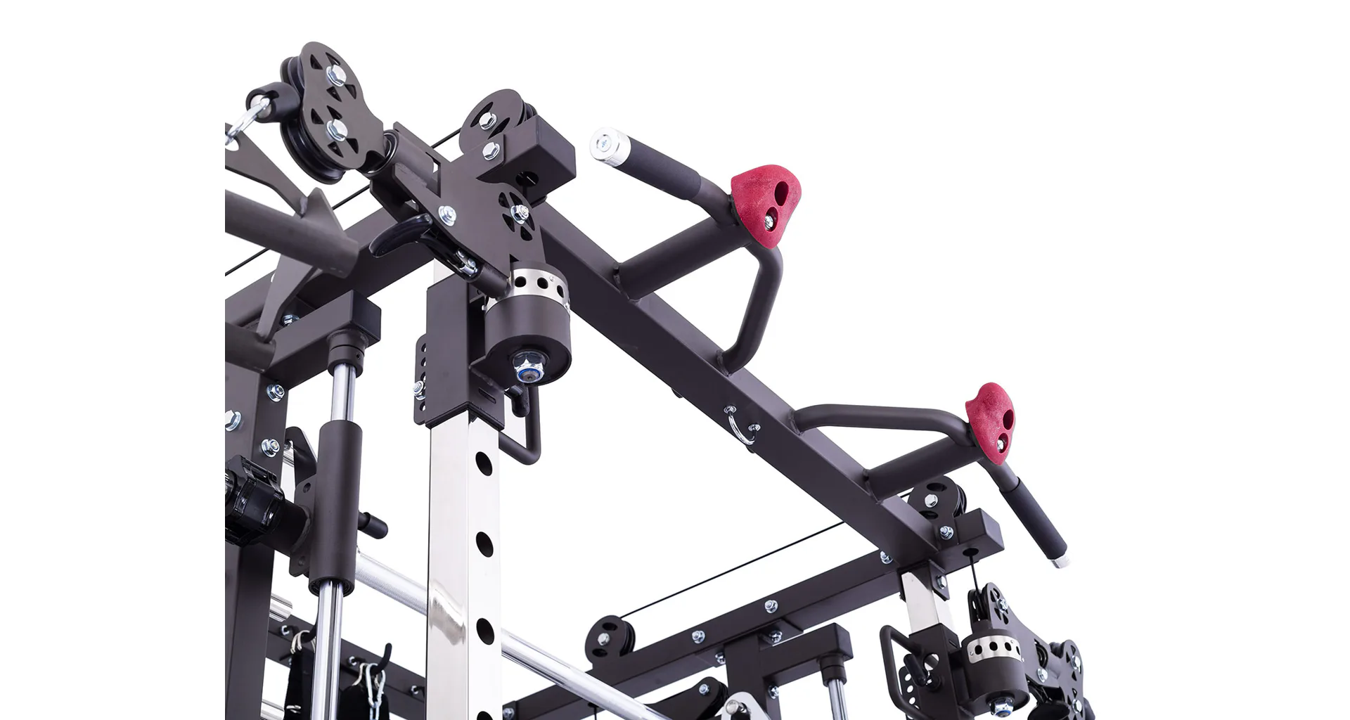 Model Multi Smith CX80 vyniká bezkonkurenční přirozenou ergonomií pohybu kladek, které jsou do stran nastavitelné v rozmezí 220° a nahoru/dolů v rozmezí 360°. Všechny kladky a multipress jsou osazeny kvalitními průmyslovými ložisky s mechanismem pro dopínání.