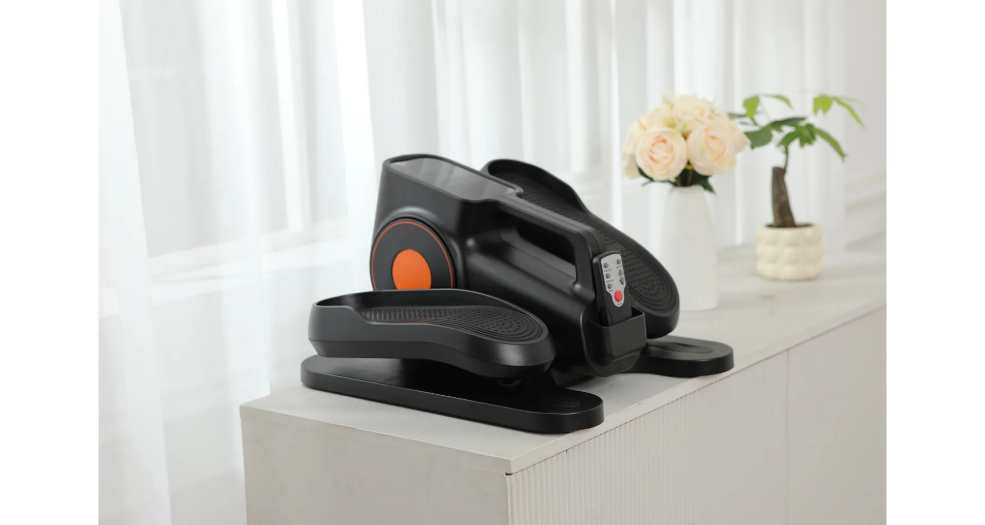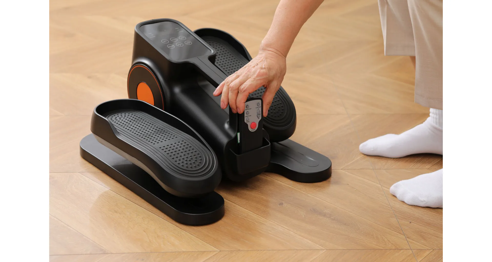 Minieliptical TRINFIT MultiStep C10 je praktickým řešením pro všechny, kteří chtějí udělat něco pro své zdraví i při sedavém způsobu života. Ať už při práci u stolu nebo při sledování televize, můžete efektivně posilovat dolní končetiny, zlepšovat krevní oběh a spalovat kalorie. Trenažér nabízí jednoduché ovládání buď přímo přes konzoli, nebo pohodlně dálkovým ovladačem.