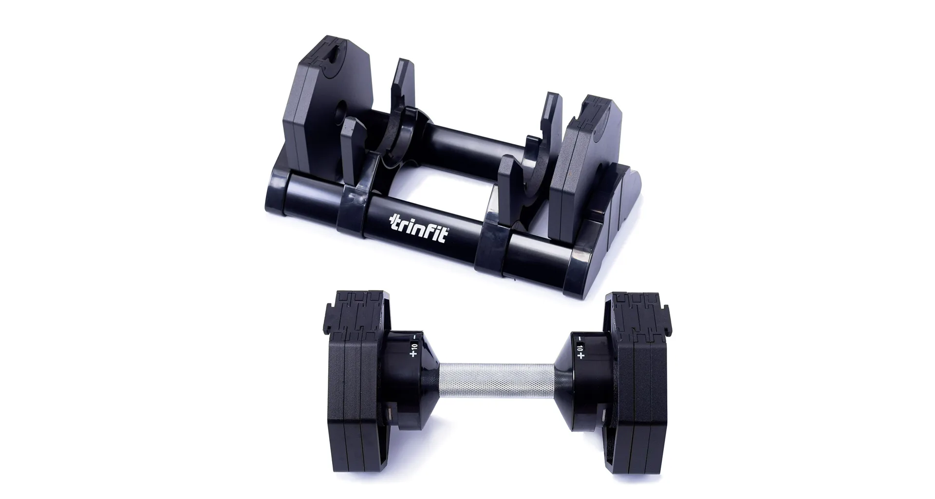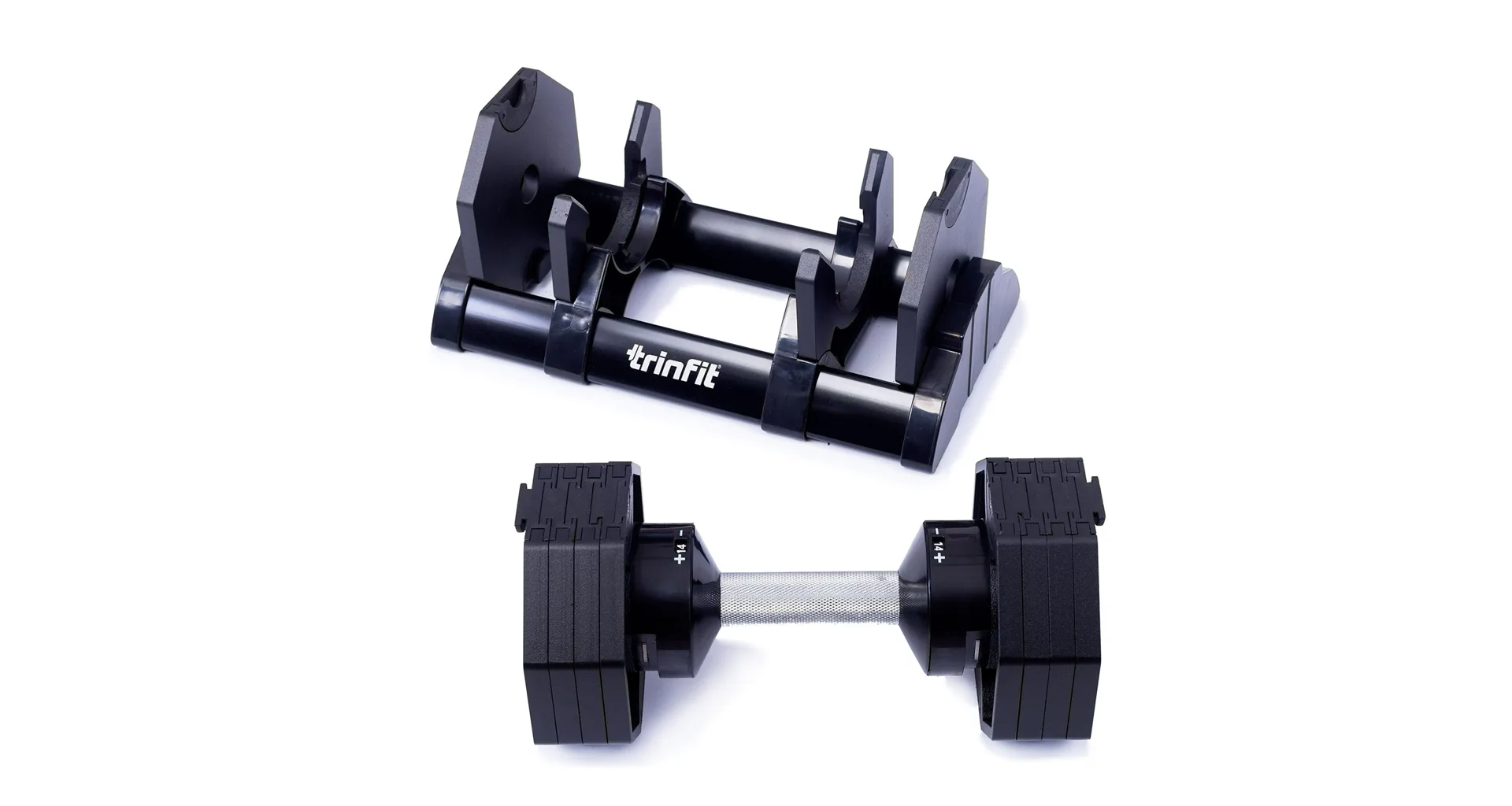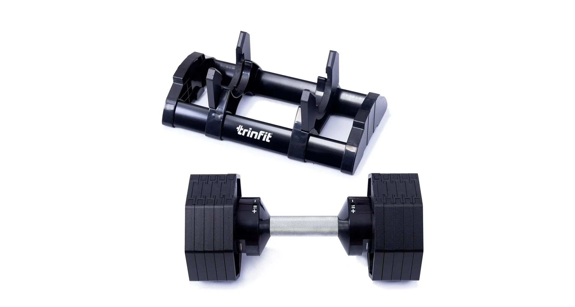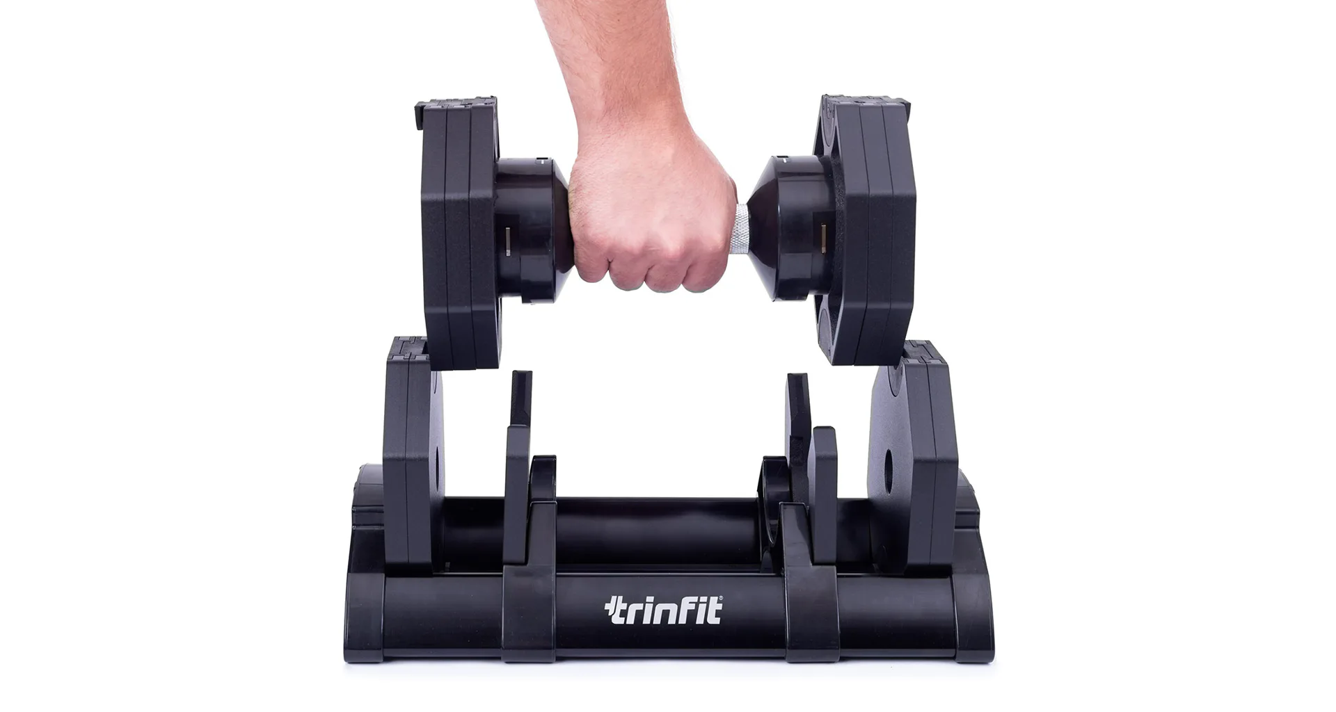 Nastavitelná činka TRINFIT OctaBlock s praktickým řešením úpravy zátěže. Pomocí praktického nakládacího/vykládacího systému nebyla změna hmotnosti nikdy snazší: nakládací činka funguje na principu disků (závaží) a otočném kolečku, na kterém si nastavíte požadovanou váhu a vybrané závaží se vám na činku „přicvakne“. Výhoda tohoto systému je velmi rychlá volba závaží a ušetření prostoru.