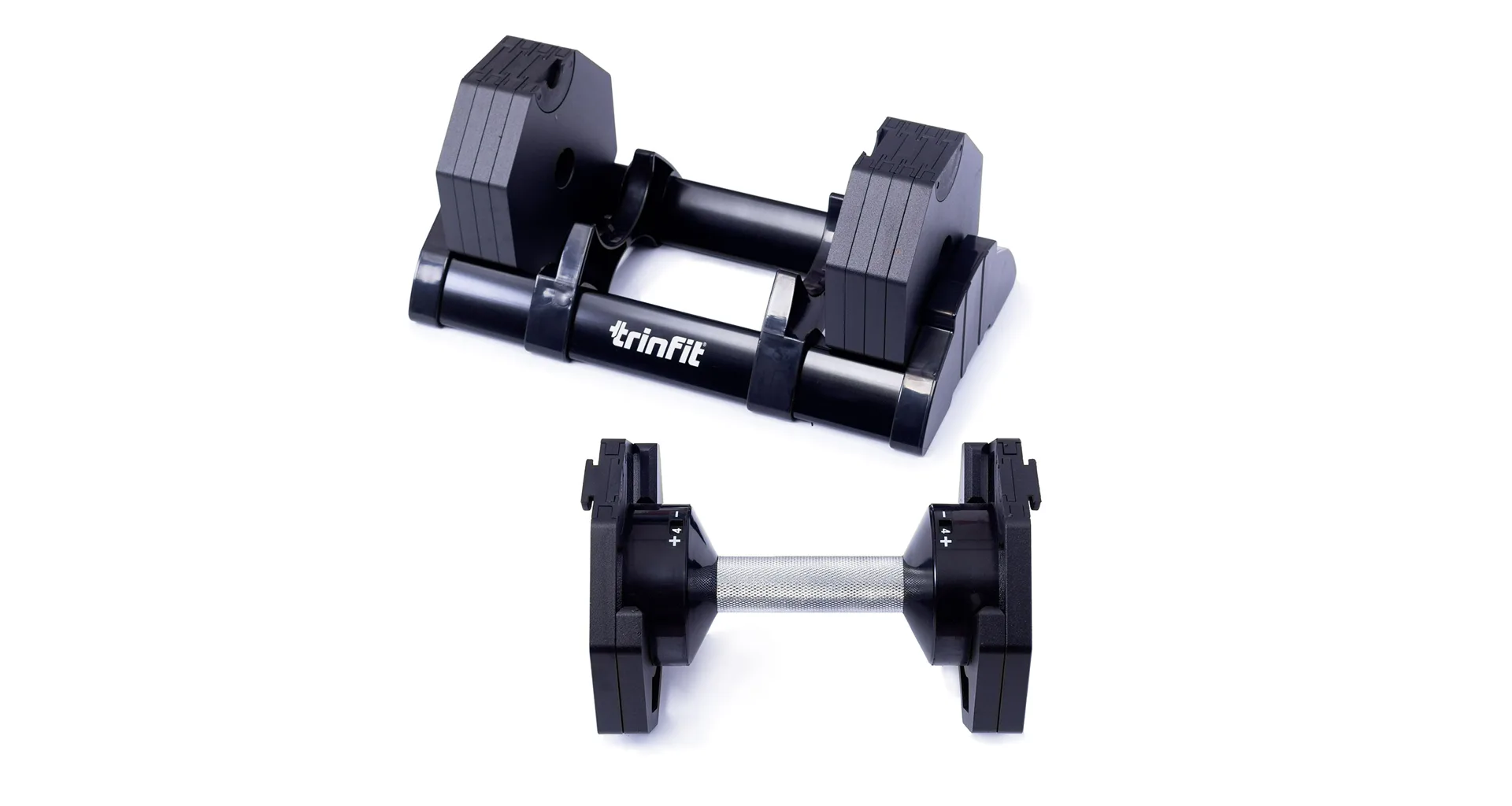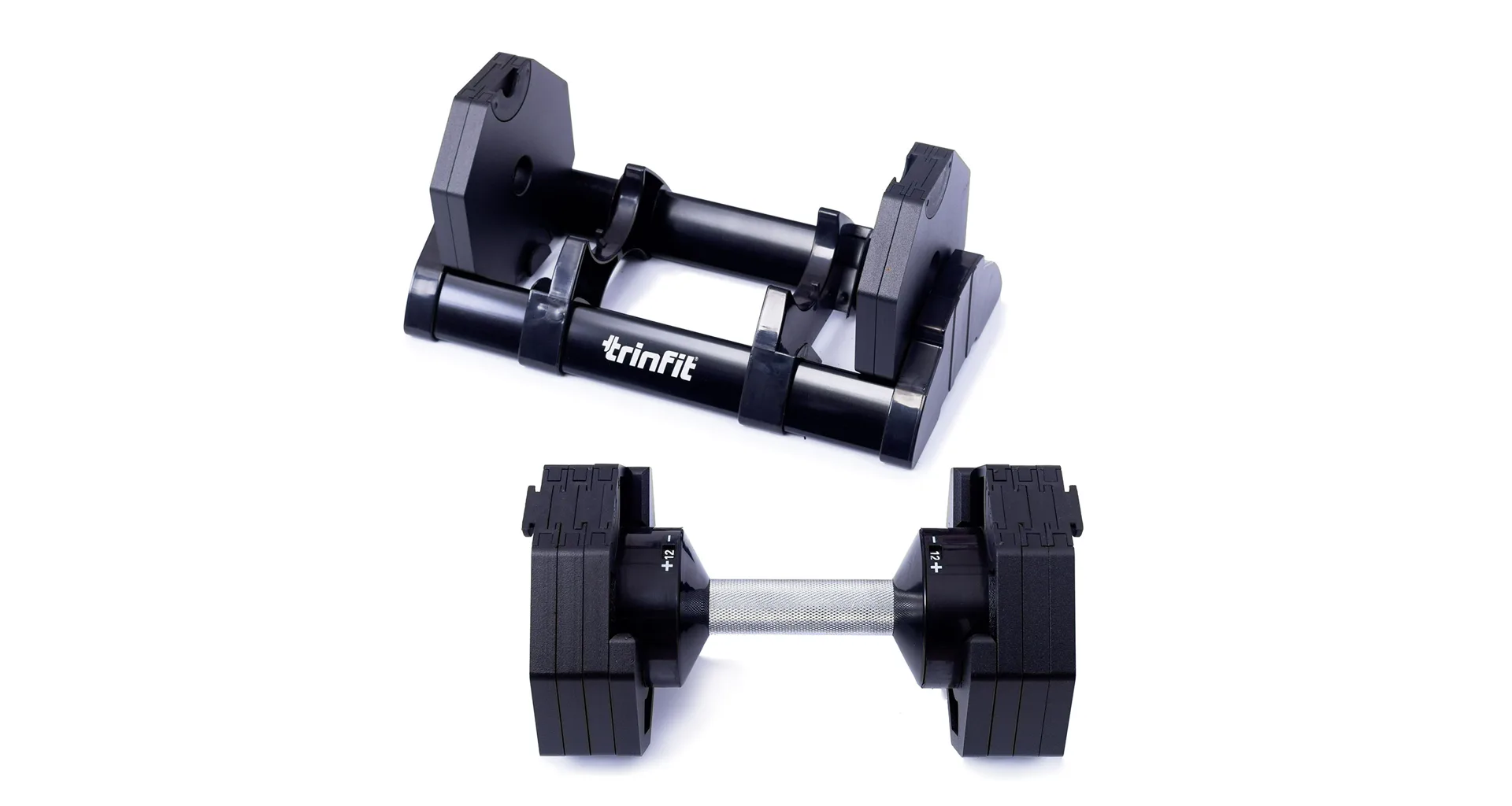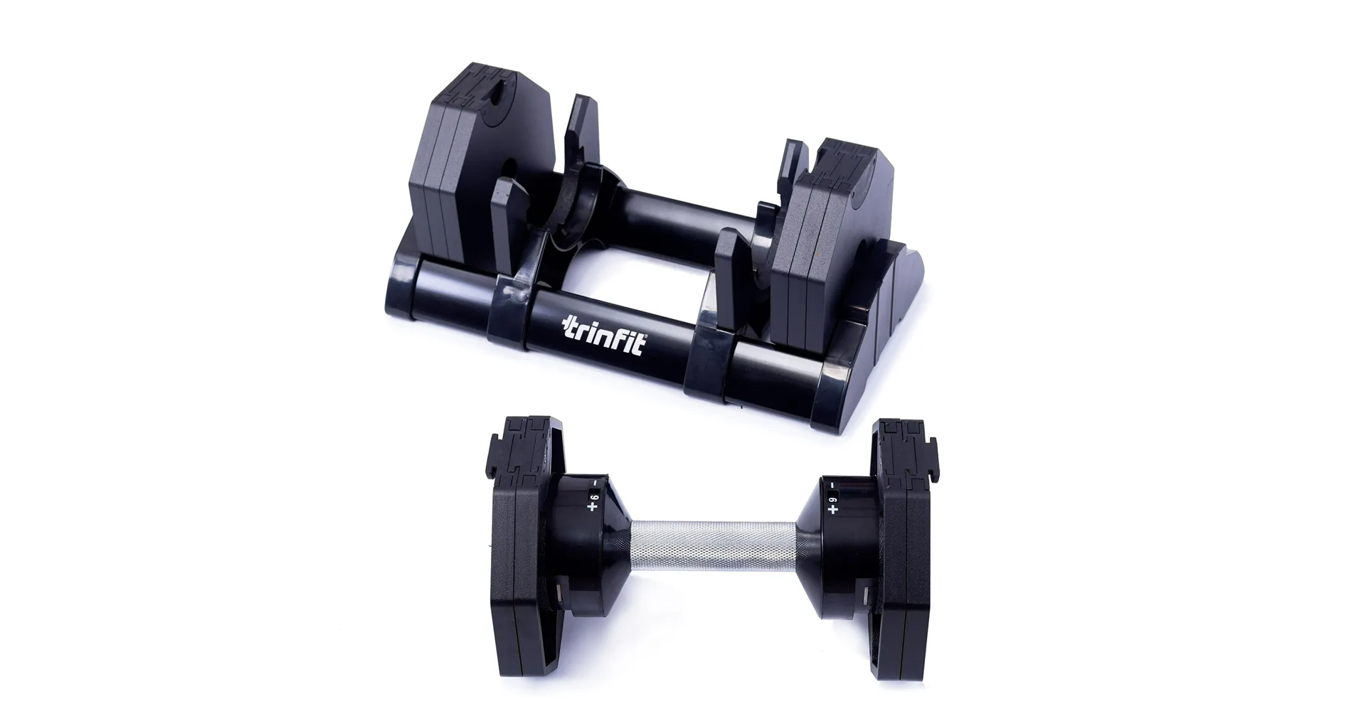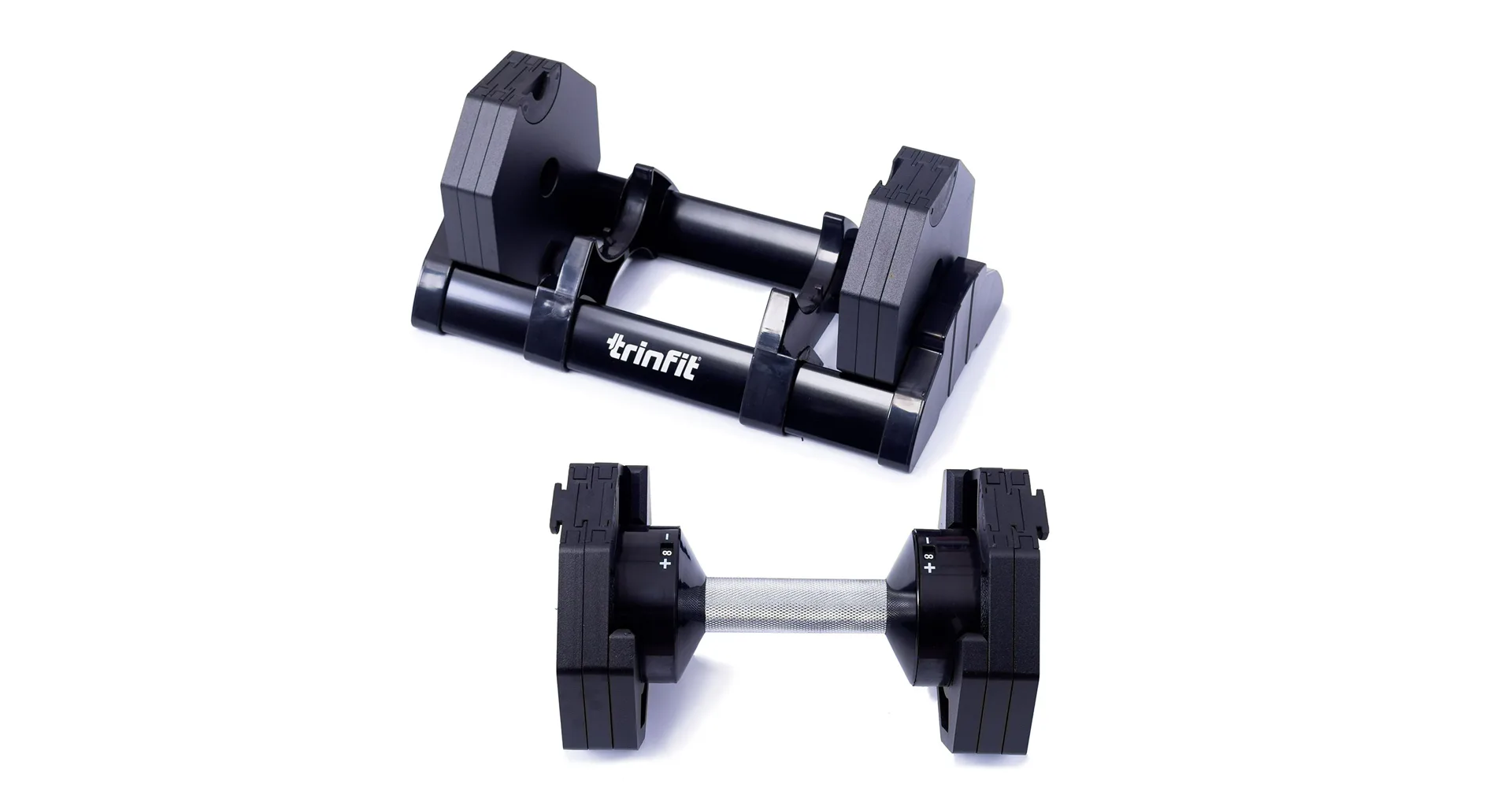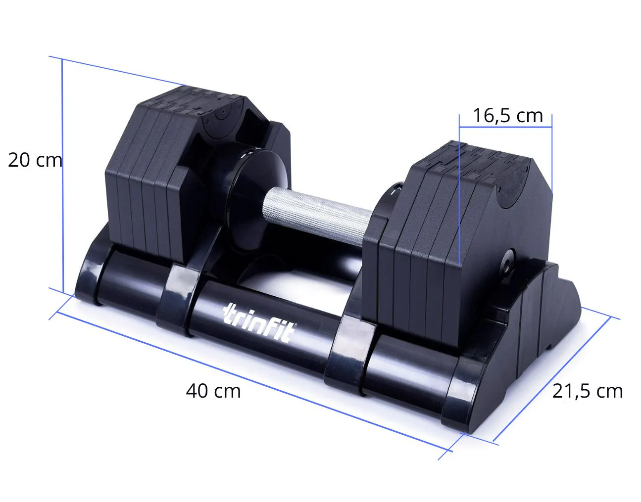Nastavitelná činka TRINFIT OctaBlock s praktickým řešením úpravy zátěže. Pomocí praktického nakládacího/vykládacího systému nebyla změna hmotnosti nikdy snazší: nakládací činka funguje na principu disků (závaží) a otočném kolečku, na kterém si nastavíte požadovanou váhu a vybrané závaží se vám na činku „přicvakne“. Výhoda tohoto systému je velmi rychlá volba závaží a ušetření prostoru.