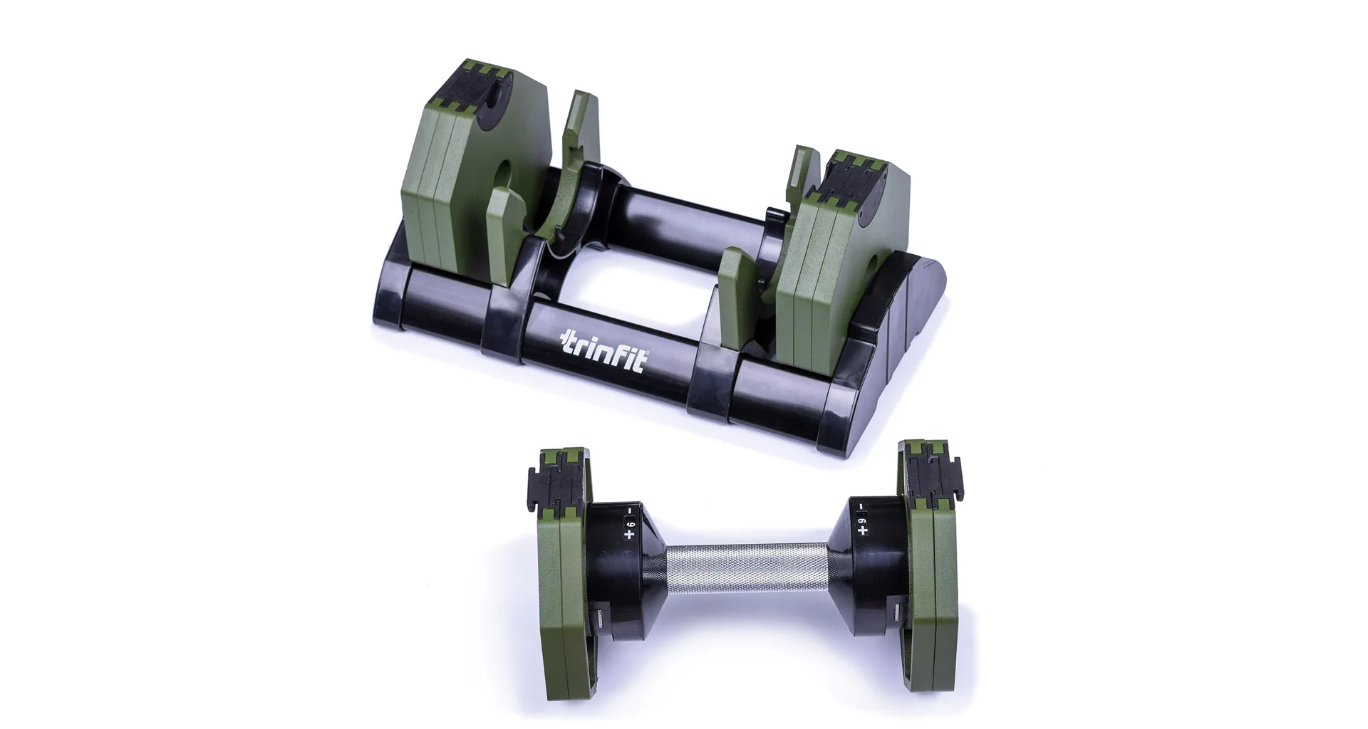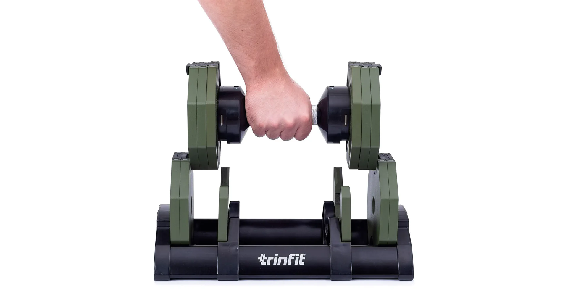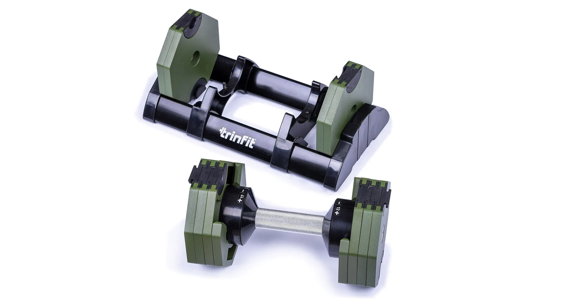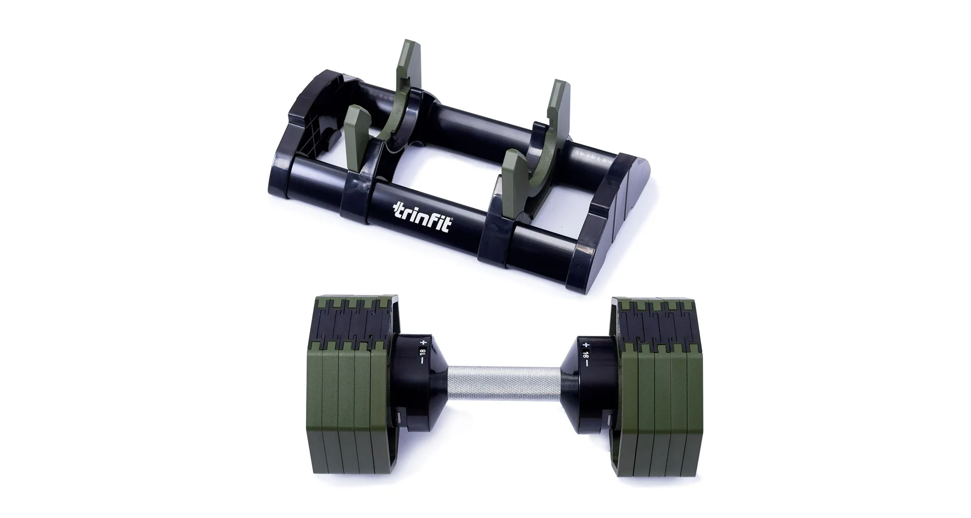 Nastavitelná činka TRINFIT OctaBlock s praktickým řešením úpravy zátěže. Pomocí praktického nakládacího/vykládacího systému nebyla změna hmotnosti nikdy snazší: nakládací činka funguje na principu disků (závaží) a otočném kolečku, na kterém si nastavíte požadovanou váhu a vybrané závaží se vám na činku „přicvakne“. Výhoda tohoto systému je velmi rychlá volba závaží a ušetření prostoru.