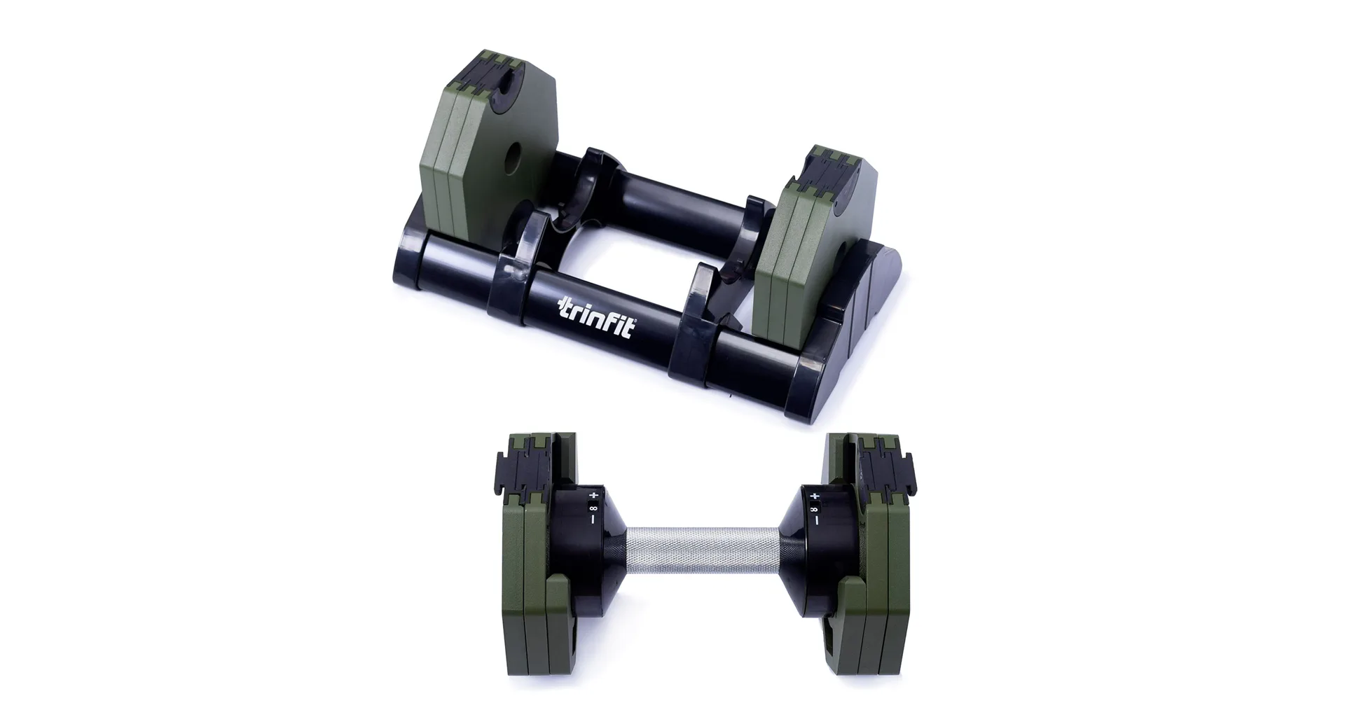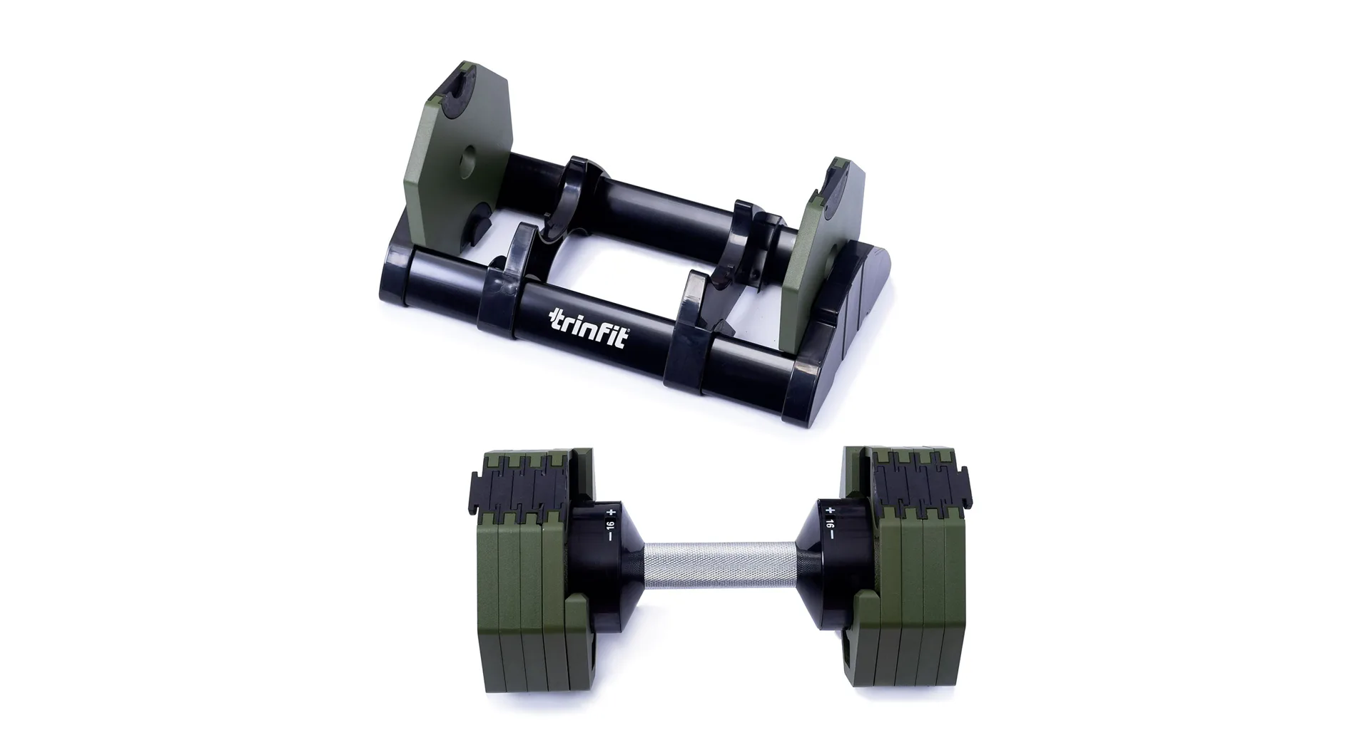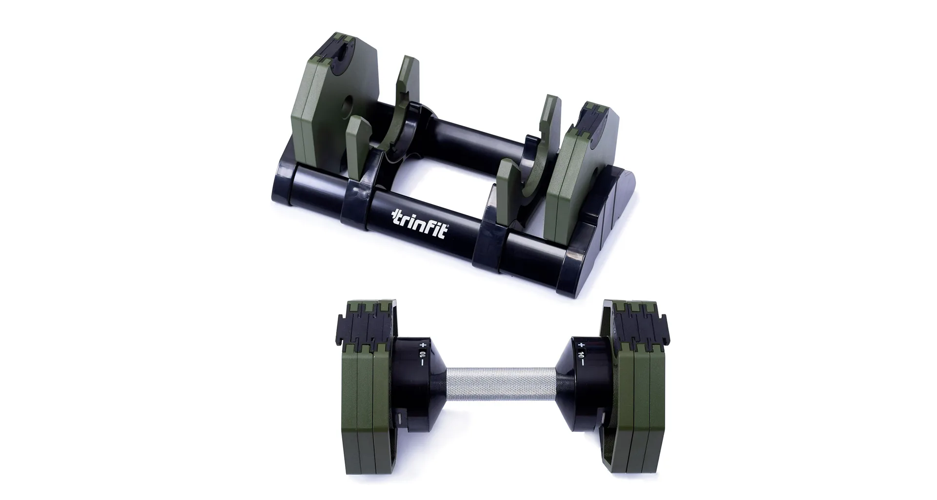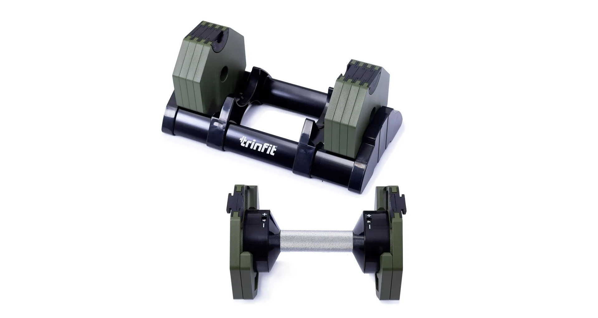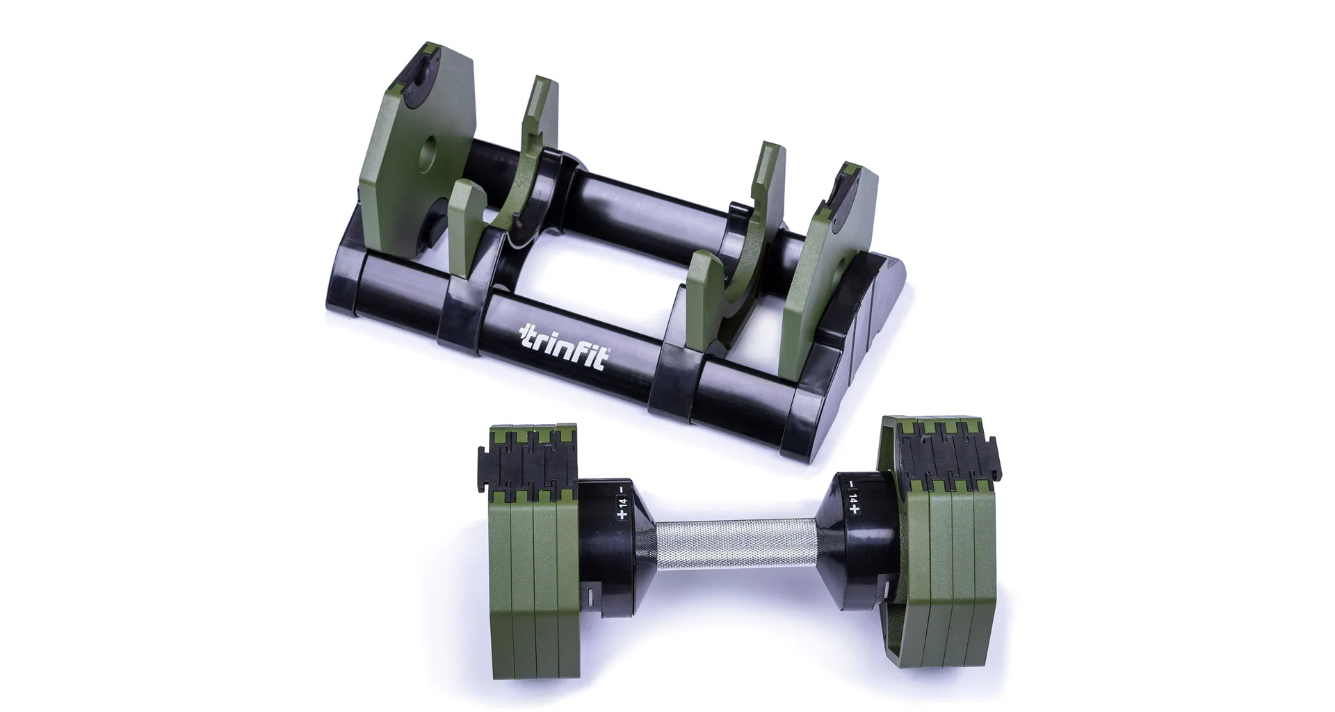 Nastavitelná činka TRINFIT OctaBlock s praktickým řešením úpravy zátěže. Pomocí praktického nakládacího/vykládacího systému nebyla změna hmotnosti nikdy snazší: nakládací činka funguje na principu disků (závaží) a otočném kolečku, na kterém si nastavíte požadovanou váhu a vybrané závaží se vám na činku „přicvakne“. Výhoda tohoto systému je velmi rychlá volba závaží a ušetření prostoru.