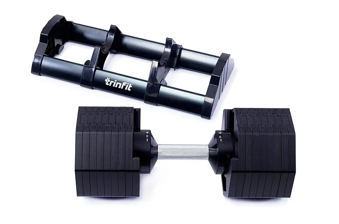 Nastavitelná činka TRINFIT OctaBlock s praktickým řešením úpravy zátěže. Pomocí praktického nakládacího/vykládacího systému nebyla změna hmotnosti nikdy snazší: nakládací činka funguje na principu disků (závaží) a otočném kolečku, na kterém si nastavíte požadovanou váhu a vybrané závaží se vám na činku „přicvakne“. Výhoda tohoto systému je velmi rychlá volba závaží a ušetření prostoru.