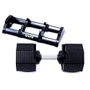 Tento set obsahuje činku s volitelnou hmotností, od 2 do 32 kg v krocích po cca 2 kg. Bezpečný trénink a snadnou manipulaci zajišťuje patentovaný blokovací mechanismus. Samotná hmotnost lze upravit pouze v okamžiku kdy je činky uložena v základním stojanu, který je samozřejmě součástí balení.
