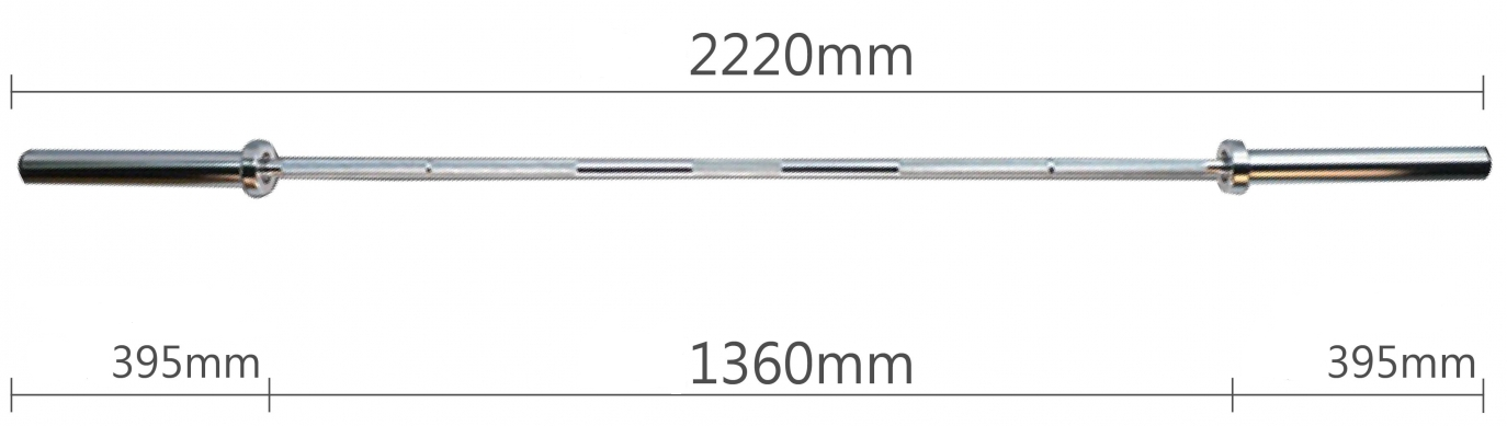 Olympijská osa TRINFIT 2200 mm LONG GRIP pro kotouče s vrtáním 50 mm určená pro posilovací trénink. Olympijská osa má délku 2200 mm a má prodlouženou úchopovou část na 1360 mm, je tak vhodná i pro osoby výššího vzrůstu.