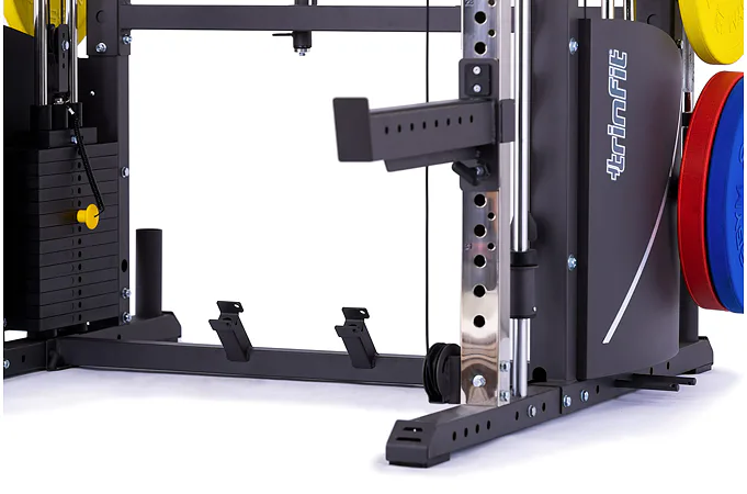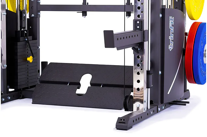 TRINFIT Podpěra desky JAM pro CX60 je vhodná pro jakoukoli výšku uživatele. Jednoduše podpěru nainstalujete na spodní boční rámy Multi Smithu CX60 pomocí 4 upevňovacích kolíků. Následně se na podpěru připevní TRINFIT Deska legpress pro CX60.