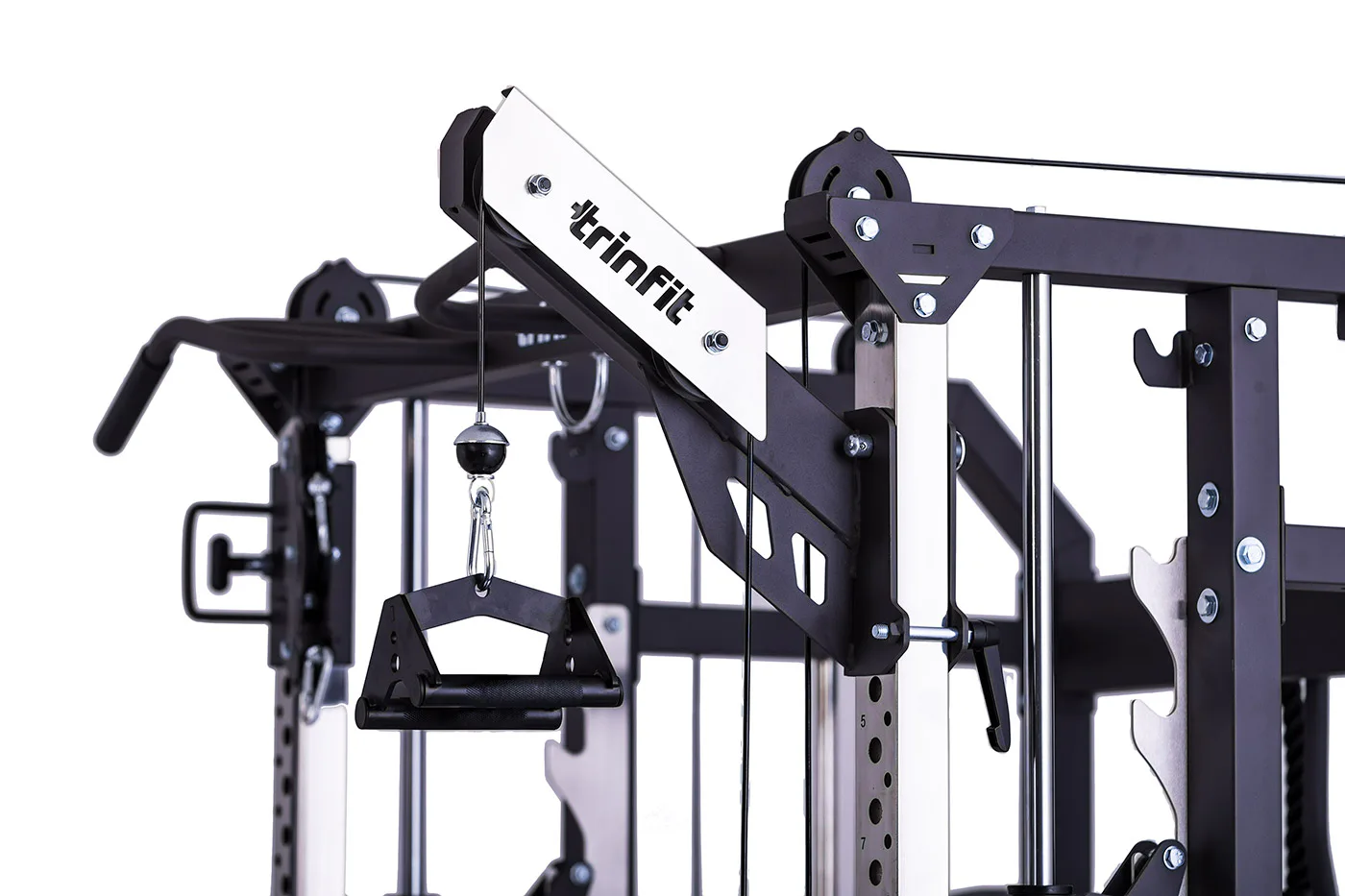 Rozšiřující adaptér TRINFIT Přídavná horní kladka CX60 tvoří jednoduchou horní kladku, díky které můžete procvičit řadu další cviků na prsa, záda atd.. Kladka se velmi snadno připevní na děrovaný profil posilovací klece TRINFIT Multi Smith CX60