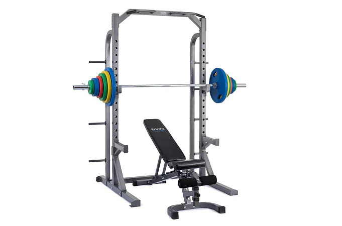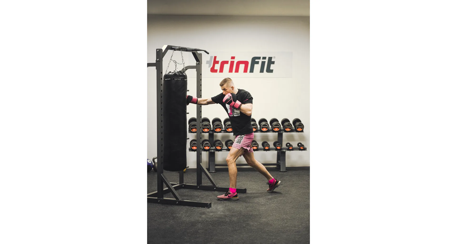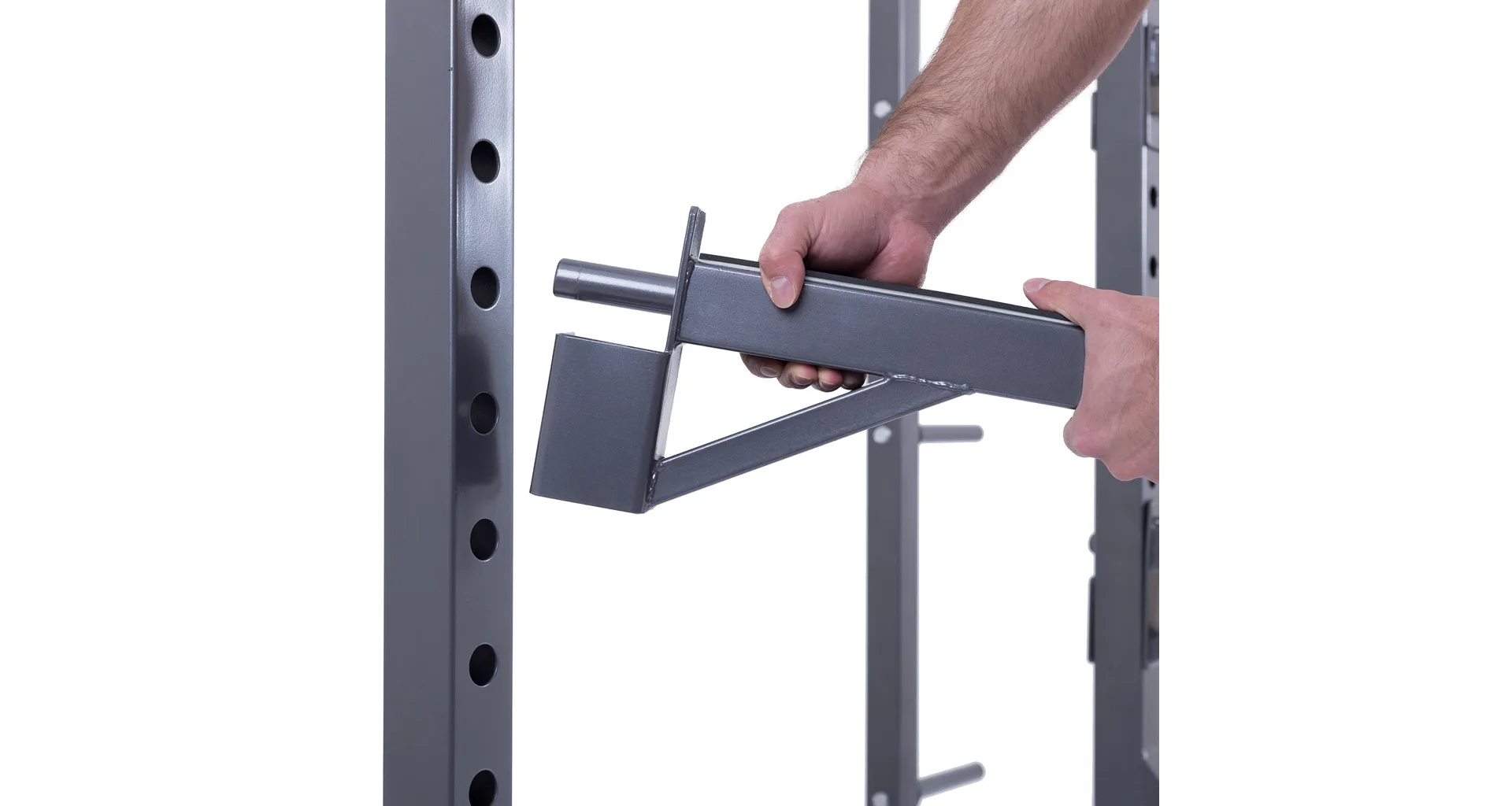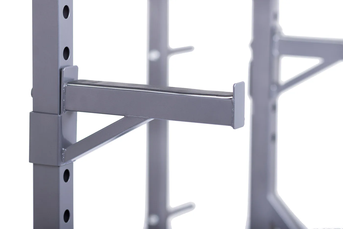 Stojan má standardní rozteč stojanů jakou znáte z komerčních posiloven, umožňuje pohodlné a komfortní cvičení, optimální úchop a bezpečné odkládání činky i vyšším osobám. Stojan má možnost jednoduchého výškového nastavení háků na činku v rozsahu 58 až 177 cm a je tedy použitelný pro všechny cviky a všechny výšky postav až do 215 cm. Kromě vlastních odkládacích háků je stojan TRINFIT Rack HX8 vybaven i dalšími pogumovanými bezpečnostními odkládacími dorazy na činku pro případ, že ji už nejste schopni činku zvednout, případně tyto dorazy lze využít i jako odkládací plochu např. při cvičení bicepsu a dalších cviků, nemusíte tak činku odkládat na zem.