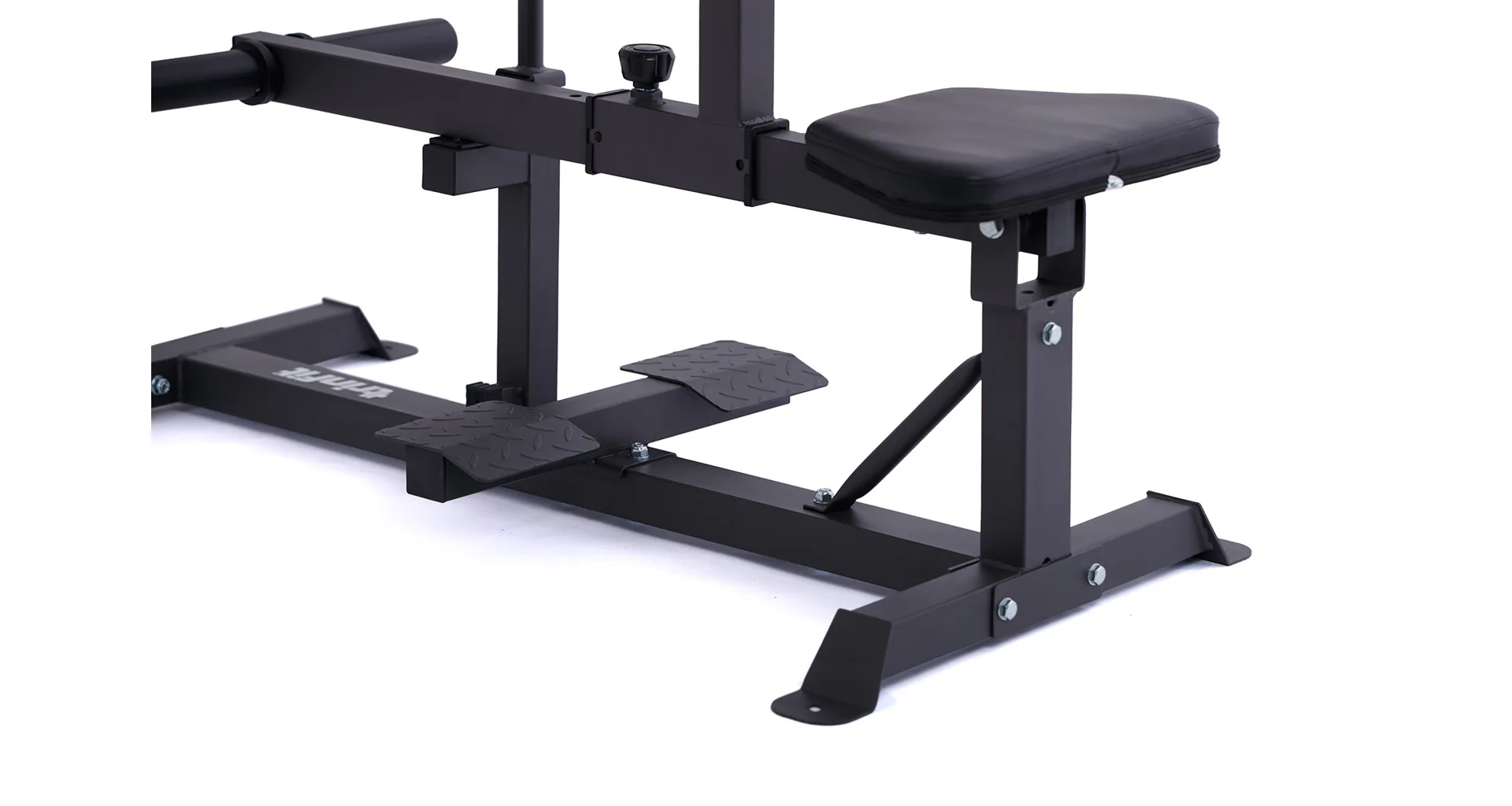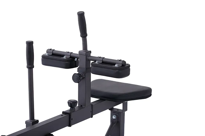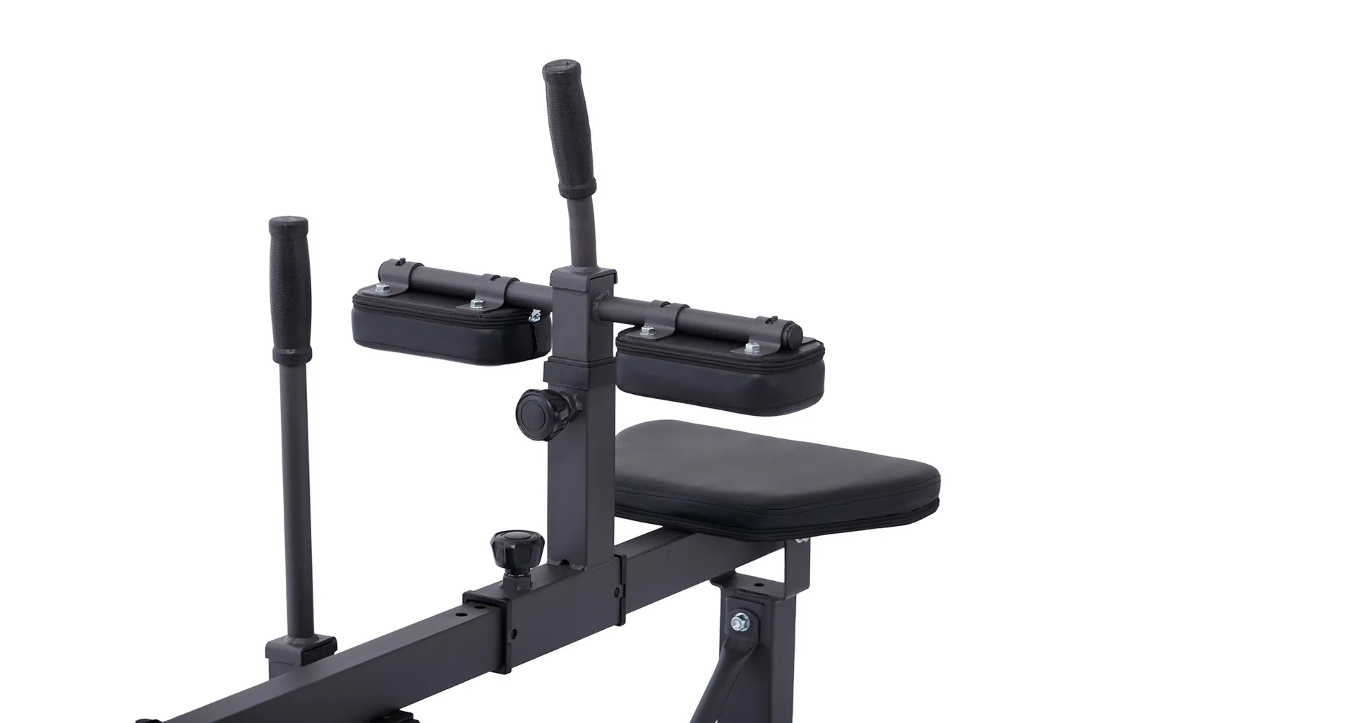 Nastavení stroje, je díky kolíkům na pružinku velmi rychlé a pohodlné. Výšku opěrky na stehna můžete nastavit až do 5 poloh, to samé i vzdálenost opěrky směrem k vám nebo od vás