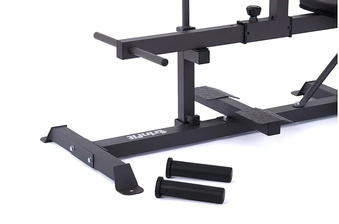 TRINFIT Seated Calf Raise Pro má k dispozici 2 nakládací trny o průměru 25 nebo 50 mm, na které si uživatel sám naloží kotouče, a tím určí zátěž s kterou bude cvičit. Cvičit mohou tedy začátečníci i zkušení jedinci. Stroj nabízí přirozeně ergonomické posilování, a to především díky nastavitelným opěrkám na nohy a pohodlnému sedáku. Protiskluzové hliníkové nášlapy a madla slouží k maximálnímu komfortu. Pro bezpečnost při cvičení stroj disponuje bezpečnostní pákou.
