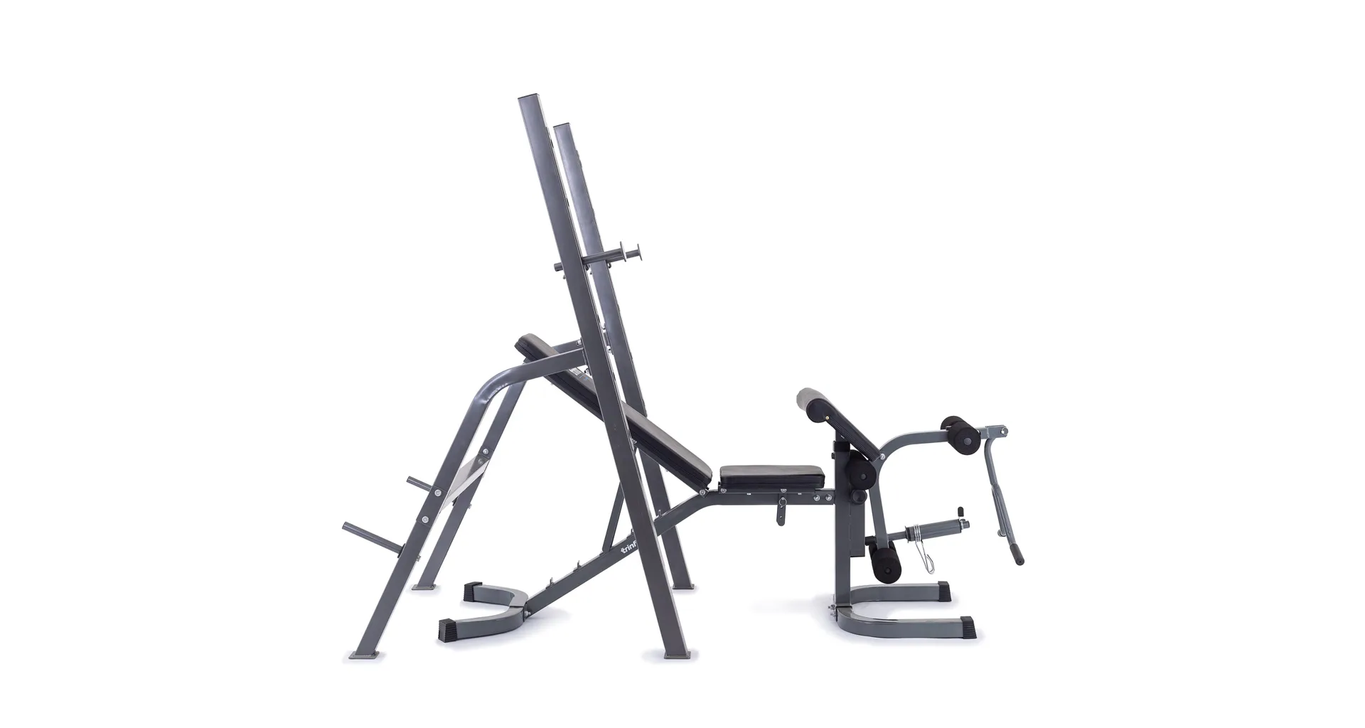 Narozdíl od většiny stojanů této cenové kategorie má stojan větší rozteč a umožňuje tedy správný úchop. Stojan má možnost jednoduchého výškového nastavení háků na činku v rozsahu 71 až 161 cm a je tedy použitelný pro všechny cviky a všechny výšky postav až do 200 cm. Výhodou stojanu jsou dva odkládací trny na kotouče umístěné na zadní straně stojanu, čímž se jednak zvyšuje stabilita stojanu a kotouče lze pohodlně odložit.