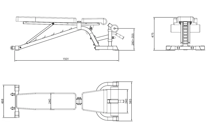 Součástí setu je posilovací lavice z profilů 70 x 50 mm s mimořádně všestranným použitím díky velkému rozsahu polohování v rozsahu - 20° až + 87°. Díky možnosti negativního sklonu lze lavici využít na cvičení břicha, nastavitelná opěrka nohou umožní optimální polohu drobnějším i vyšším osobám až do 205 cm. Mimořádně odolné dvouvrstvé čalounění o tloušťce 60 mm zaručuje komfortní cvičení i s vyššími vahami. Díky transportním kolečkům a úchopovému madlu lze lavici snadno přemístit.