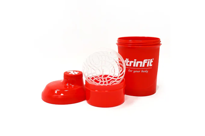 TRINFIT Shaker Red Fire je praktický dvojdílný šejkr pro přípravu koktejlů se šroubovacím uzávěrem. Objem shakeru je 300 ml s patrem na tablety, kapsle nebo prášek (150 ml). Spodní část slouží na prášek, tablety a kapsle, vrchní na přípravu nápoje. Mřížka zajistí kvalitní promíchání koktejlu.