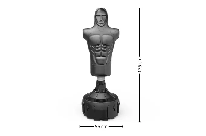 Tělo panáka je vyrobeno z vysoce kvalitního PU materiálu, který je odolný proti opotřebení a zároveň příjemný na dotek. Oproti běžným plastovým modelům poskytuje realističtější pocit při úderu. Základna o průměru 55 cm zajistí stabilitu, přičemž ji lze naplnit vodou nebo pískem pro ještě lepší fixaci. Navíc je opatřena silnými přísavkami, které zvyšují stabilitu a zabraňují nechtěnému posunu při tréninku.