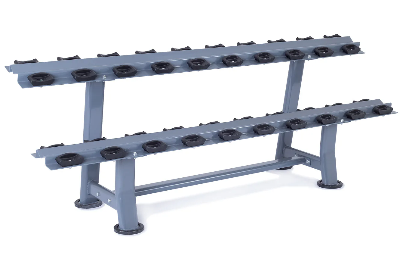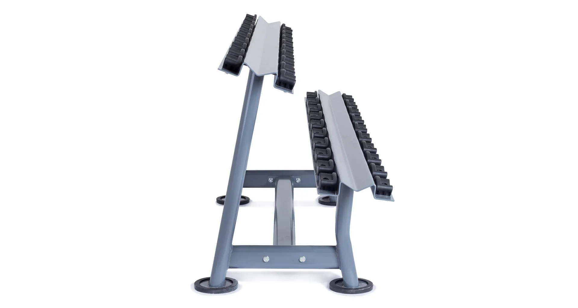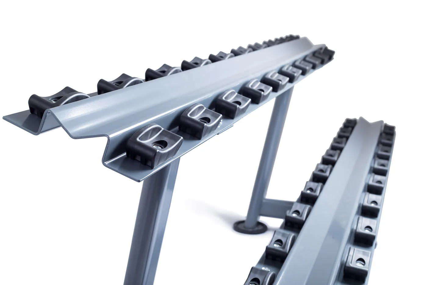 Odkládací stojan na jednoručky TRINFIT Rack Comfort je určený pro komfortní uložení jednoručních činek v komerčních, klubových i domácích posilovnách. Díky konstrukci s gumoplastovými lůžky pro každou činku jsou jednoručky uloženy přehledně každá na svém místě a ve stojanu se nehýbou. Stojan je vyroben z kvalitního kovu, masivní konstrukce a horní ohýbaný profil o tloušťce 5 mm zaručuje jeho vysokou tuhost, pevnost a nosnost, kdy na stojan pohodlně uložíte jednoručky o celkové váze až 300 kg.