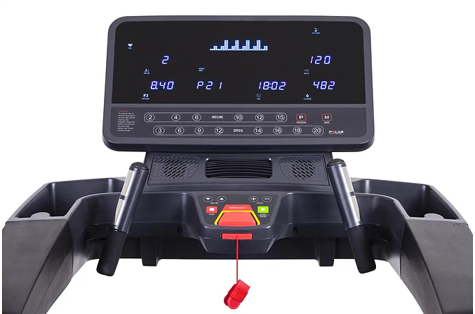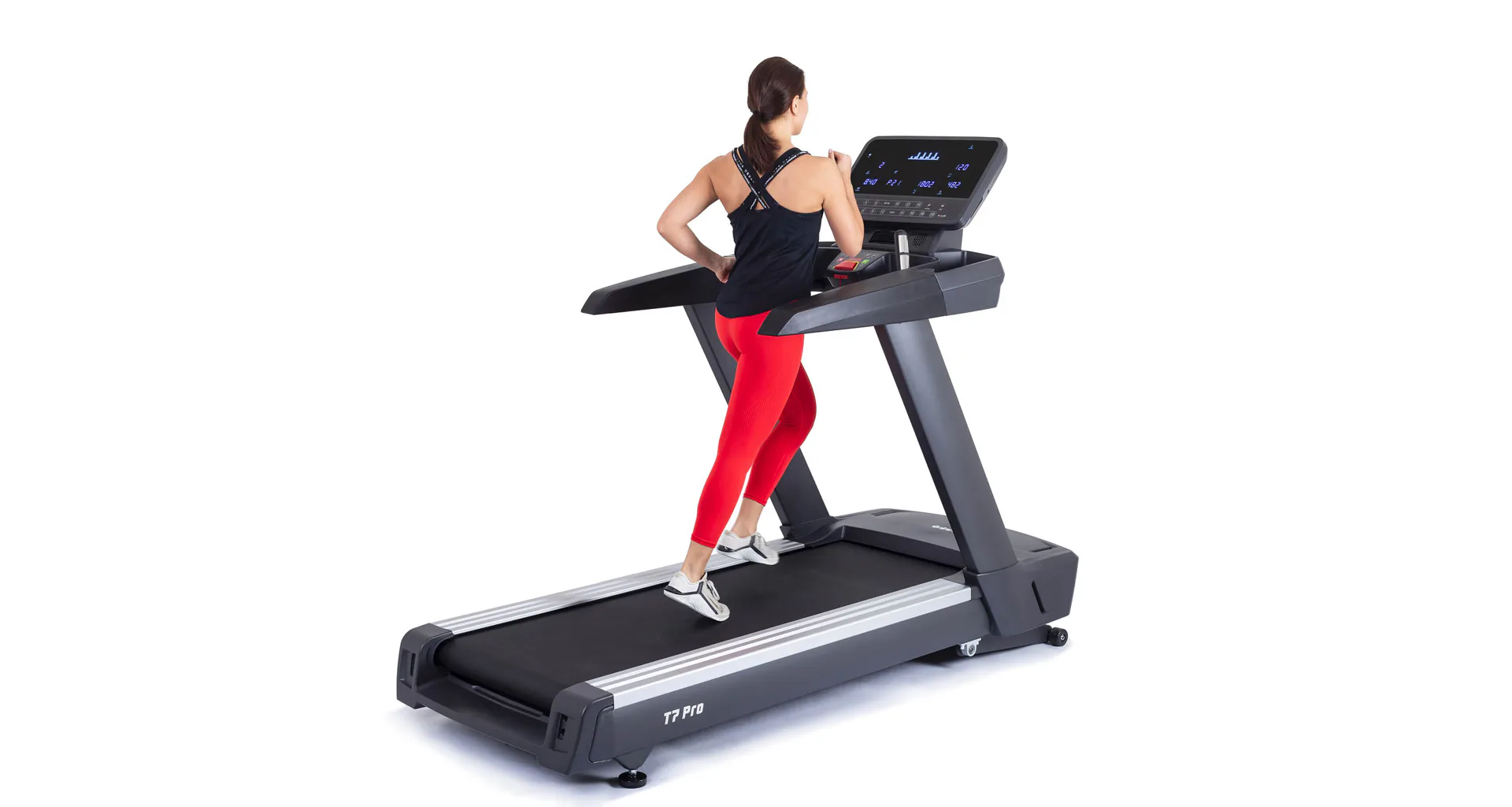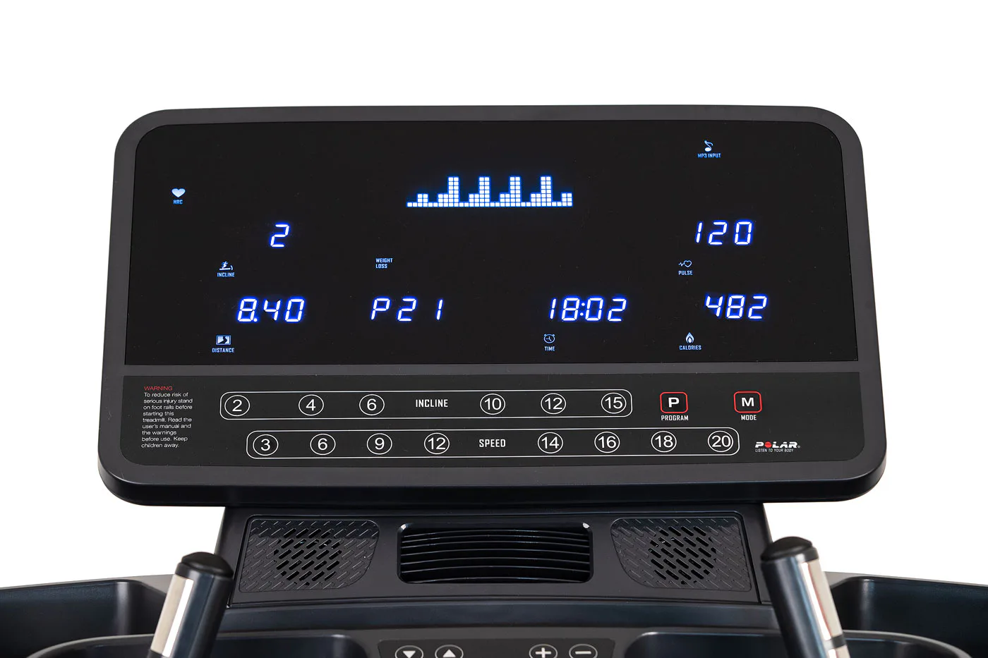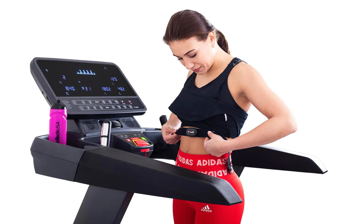 TRINFIT T7 Pro nabízí velký, přehledný a podsvětlený LCD displej s bohatou programovou nabídkou pro efektivní a zábavný trénink. Umožní vám sledovat váš trénink v reálném čase pomocí dat monitorujících vaši rychlost, čas, vzdálenost, spálené kalorie a srdeční frekvenci a řadou tréninkových programů, které si můžete nastavit dle tepové frekvence či dle jiných parametrů.