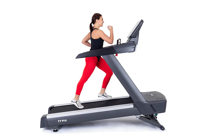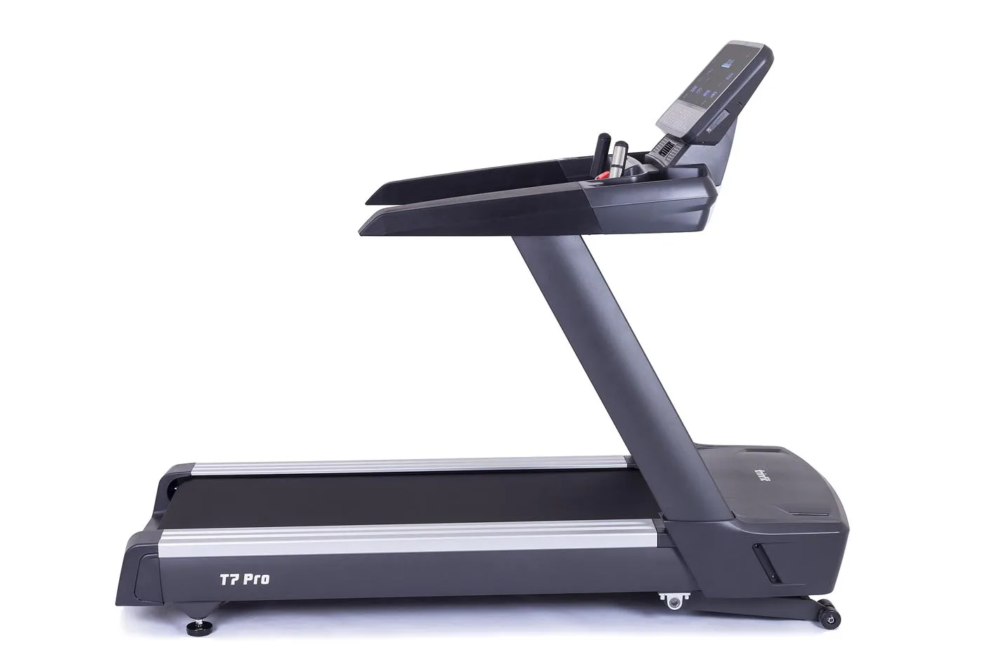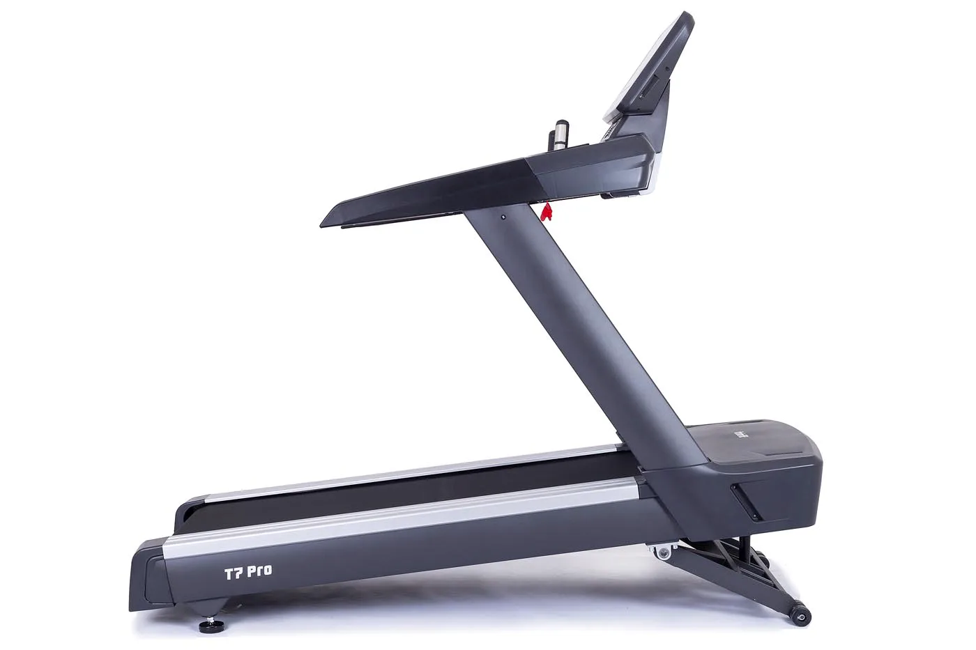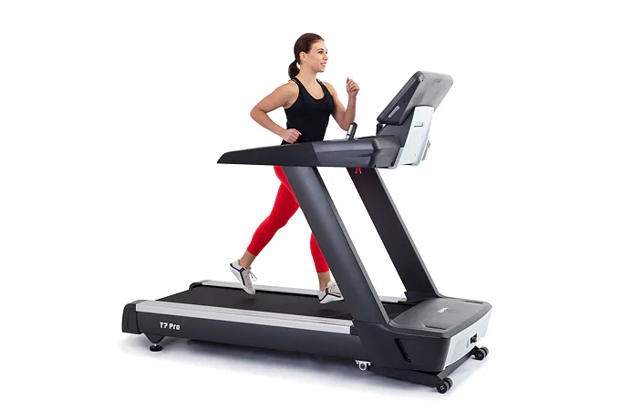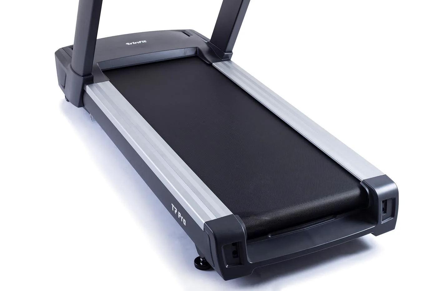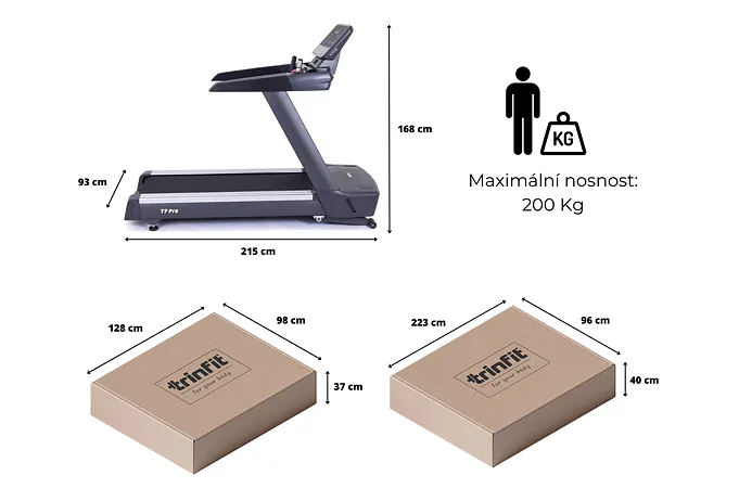 TRINFIT T7 Pro je profesionální běžecký pás, který skvěle zapadne do každého fitness centra. Vyniká především robustní konstrukcí s nosností až 200 kg, velkou běžeckou plochou 60x162 cm bez nutnosti mazání (stroj je vybavený speciální voskovanou deskou) a vydrží tak i několikahodinové zatížení každý den.