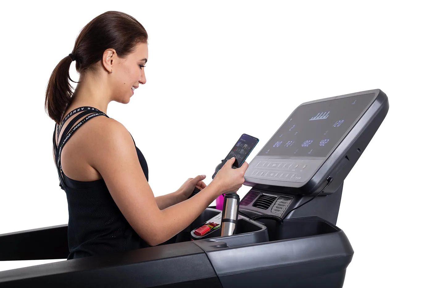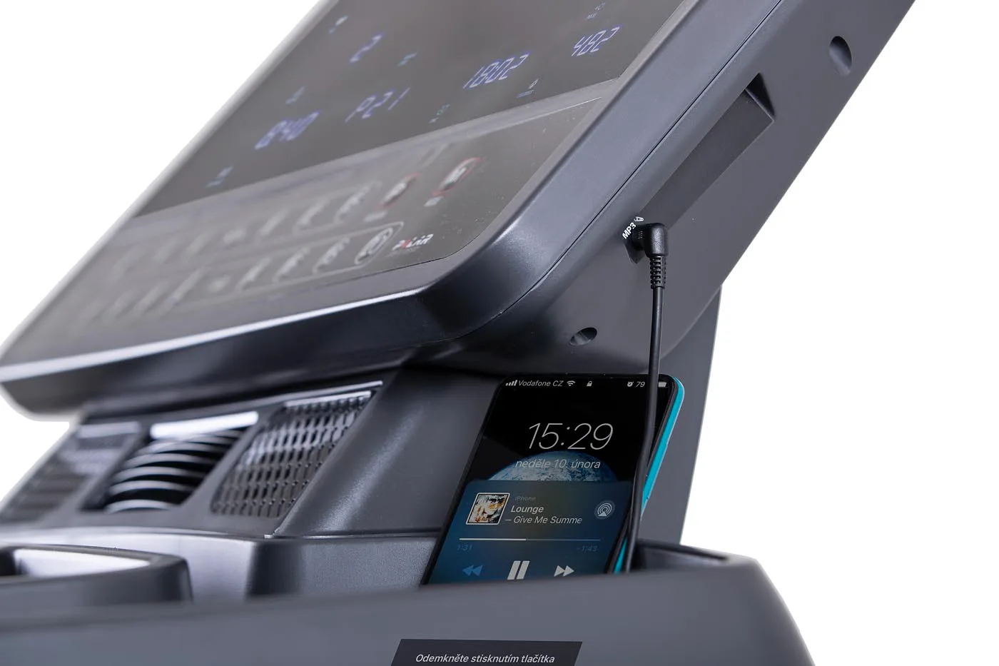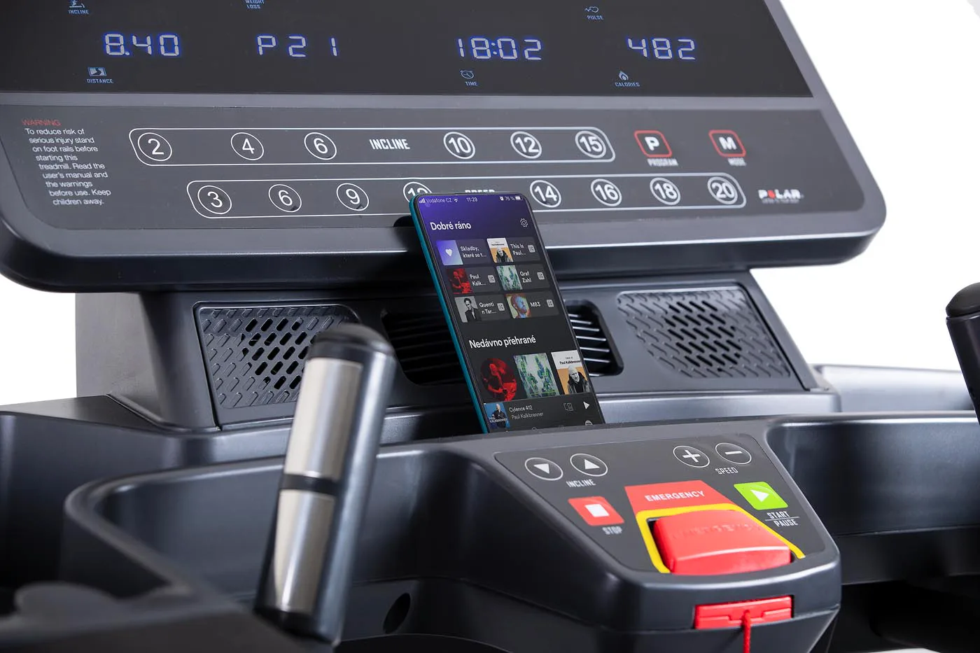 Díky funkci Bluetooth je možné běžecký pás spárovat s tréninkovými aplikacemi. Vyobrazený tablet není součástí dodávky.