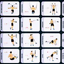 Na tabuli je vyobrazený zásobník cviků včetně procvičovaných svalových partií a znázornění provedení cviku.