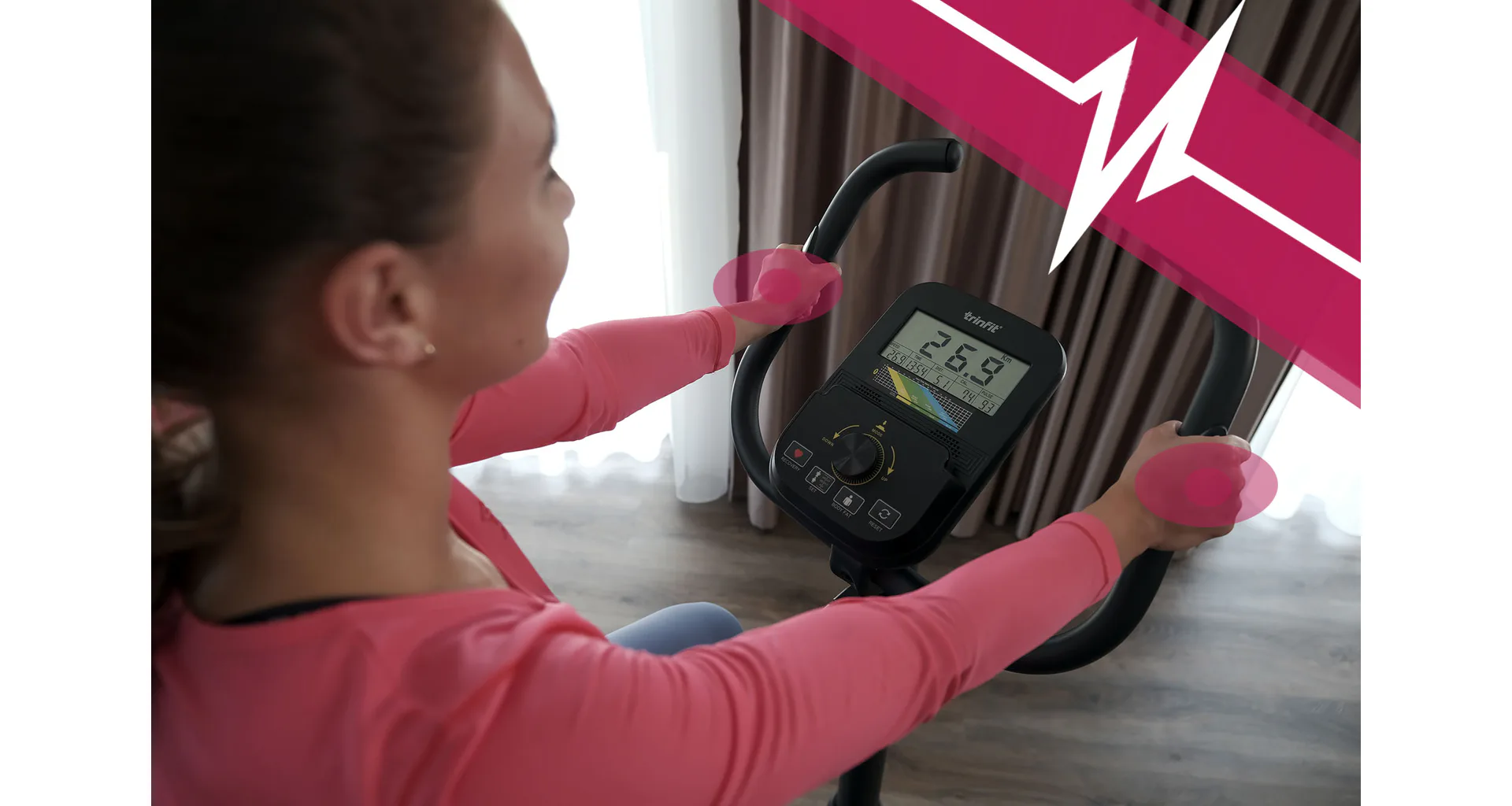 TRINFIT Vivo B400 nabízí přehledný LCD displej, který vám vyobrazí všechny základní hodnoty pro váš trénink. Umožní vám sledovat váš trénink v reálném čase pomocí dat monitorujících váš čas, vzdálenost, rychlost, spálené kalorie, otáčky za minutu a srdeční frekvenci.
