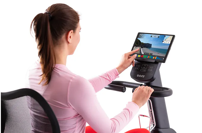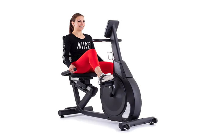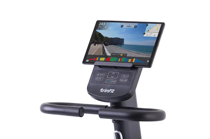 Díky funkci Bluetooth je možné recumbent spárovat s chytrými zařízeními pro využívání tréninkových aplikací. Vyobrazený tablet není součástí dodávky.