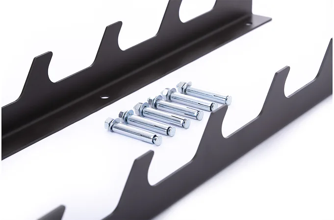 Nástěnný držák na činky je vhodný pro domácí a lehce komerční použití. Je však dostatečně silný, aby mohl být intenzivně používán na místech, jako jsou tělocvičny. Silný rám zajišťuje, že můžete bezpečně zavěsit až šest dlouhých činek/os.